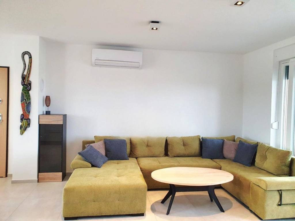 Stan se prodaje potpuno namješten,grijanje i hlađenje putem klima uređaja,a prednost je nekretnine postavljeno podno grijanje na struju.