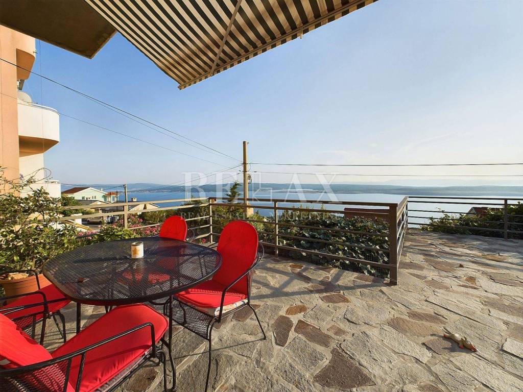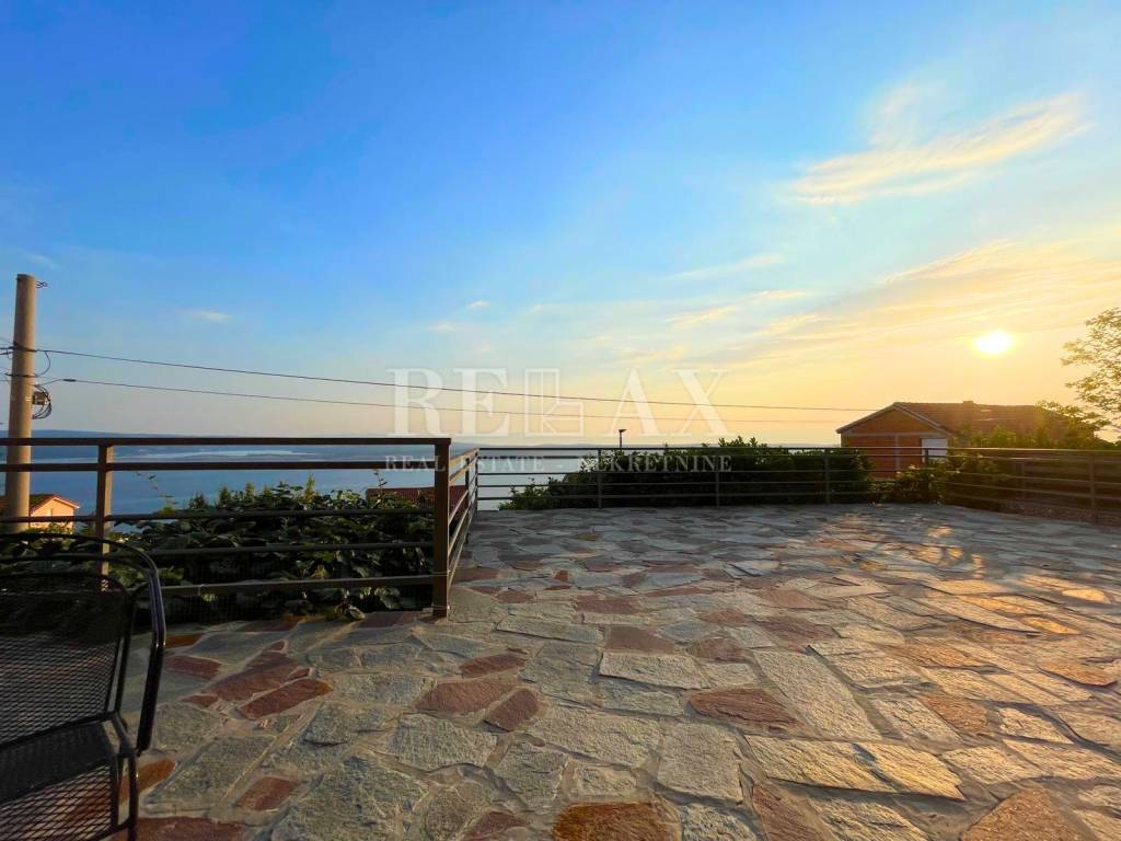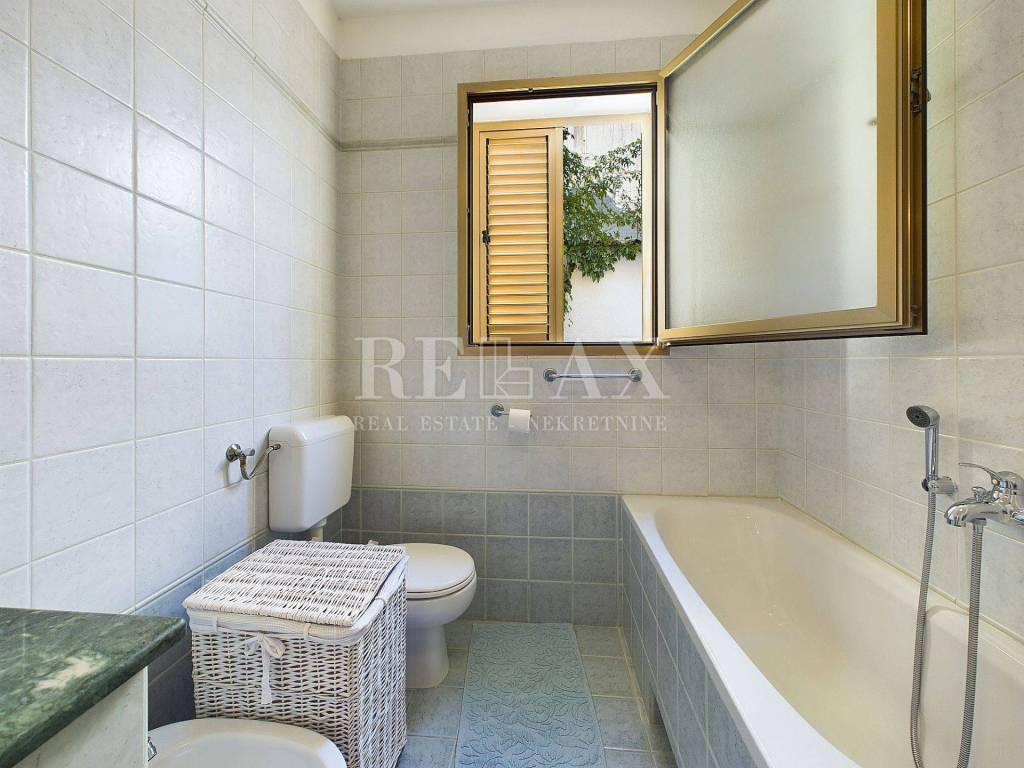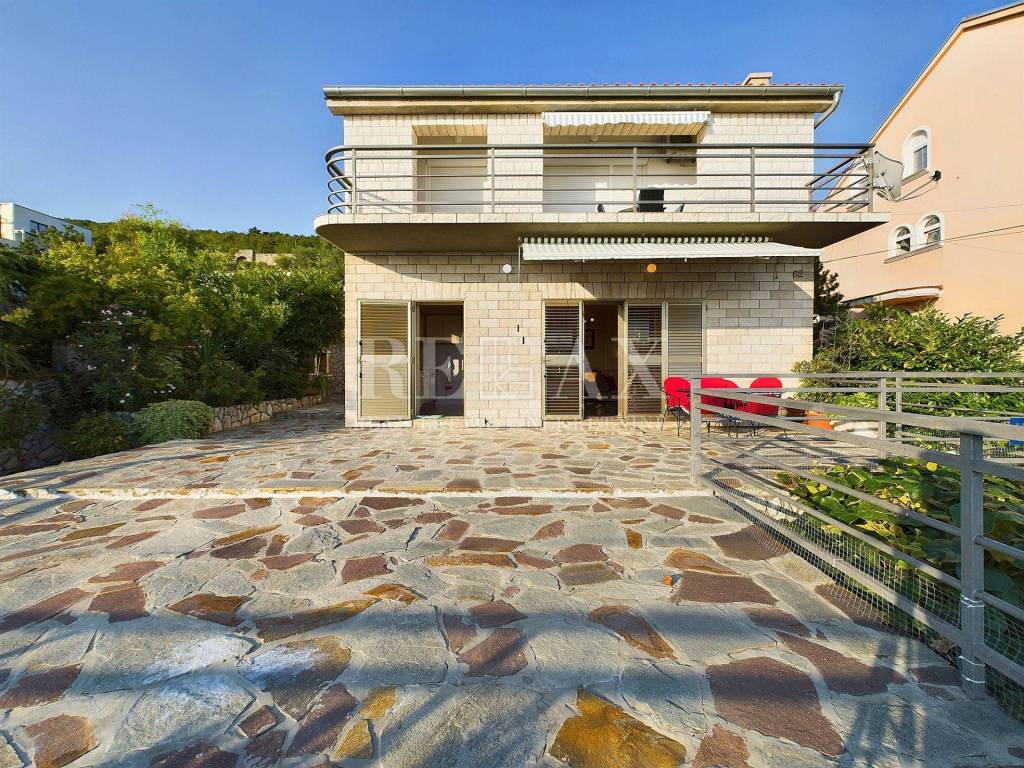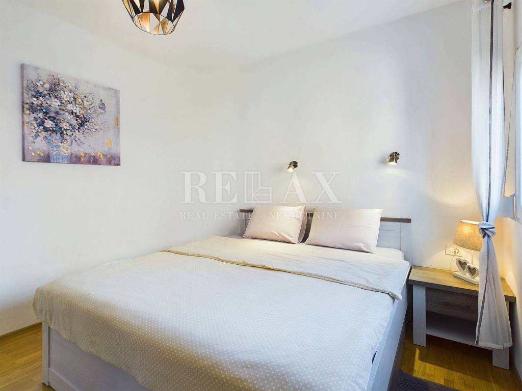 Na prvom katu smješten je moderno uređen stan s dvije spavaće sobe, hodnikom, kupaonicom i velikim dnevnim boravkom s panoramskim pogledom na more. Balkon na katu je djelomično natkriven, pružajući savršeno mjesto za opuštanje.