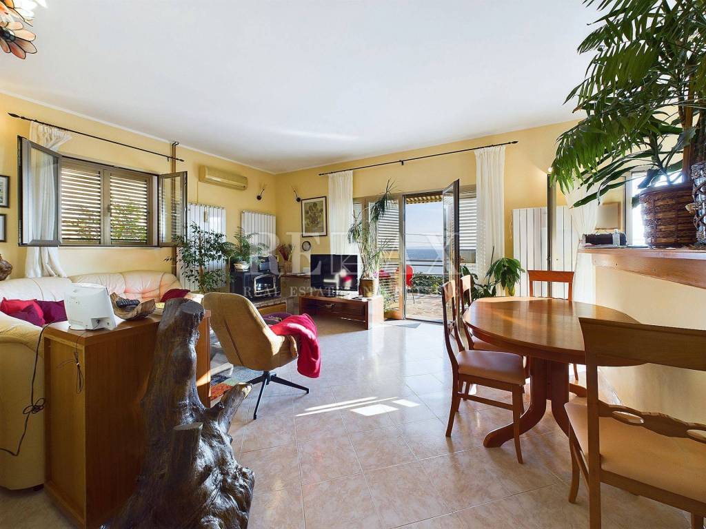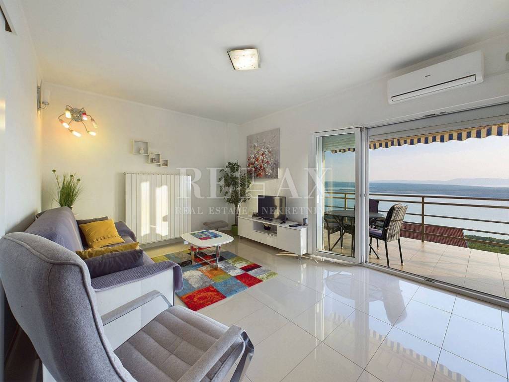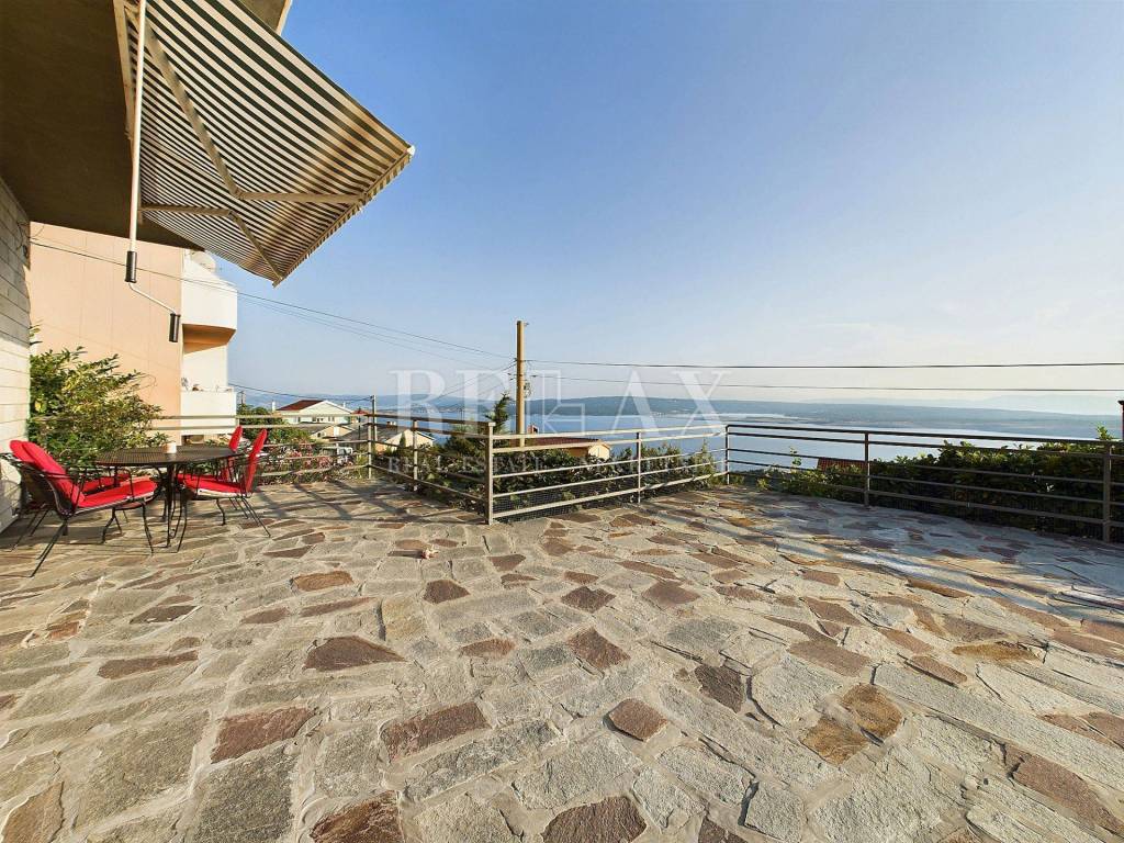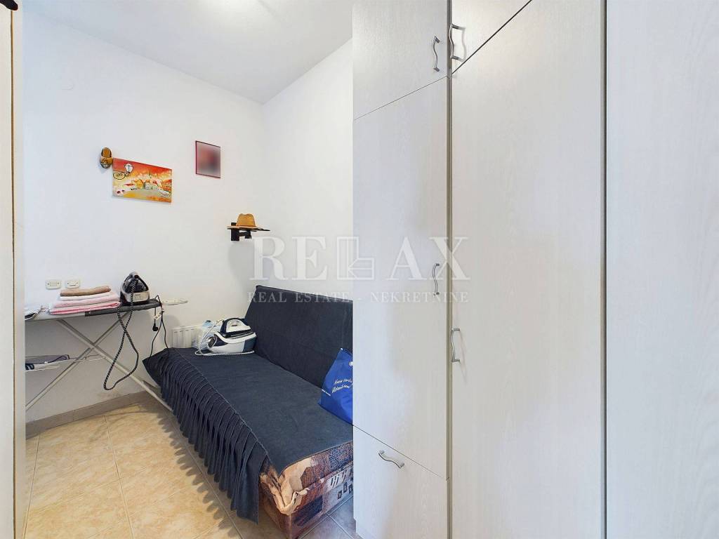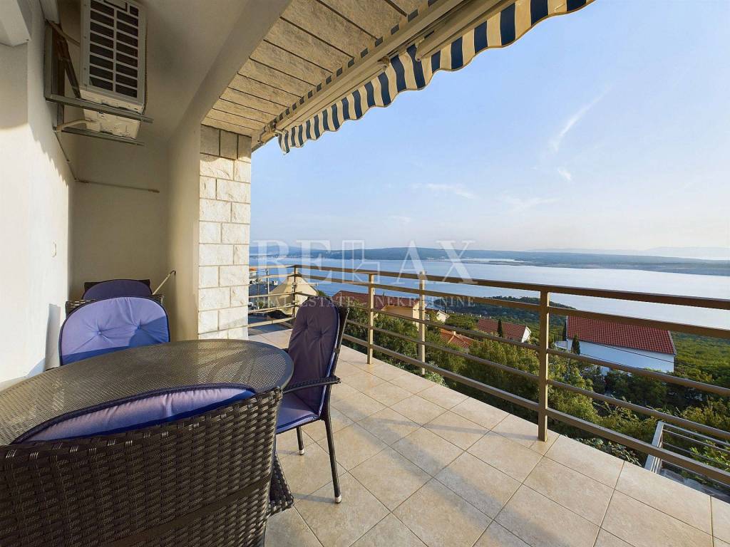 Na prvom katu smješten je moderno uređen stan s dvije spavaće sobe, hodnikom, kupaonicom i velikim dnevnim boravkom s panoramskim pogledom na more. Balkon na katu je djelomično natkriven, pružajući savršeno mjesto za opuštanje.