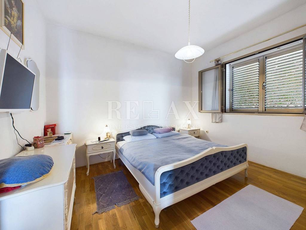 Prodaje se prostrana kuća u mirnoj ulici Dramlja, idealna za stalno stanovanje ili turistički najam. Kuća se nalazi na južnoj orijentaciji, pružajući prekrasan panoramski pogled na more, te se prostire na ukupnoj stambenoj površini od 138,04 m2. Sastoji se od prizemlja i prvog kata, s dodatnim balkonom od 19,22 m2 i prostranom terasom od 73,36 m2 koja nudi mogućnost izgradnje bazena.