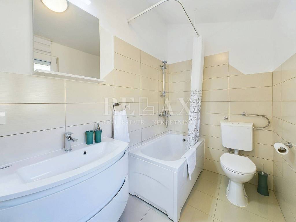 Ova kuća potpuno je namještena i opremljena klima uređajima. Grijanje je centralno na struju, s mogućnošću grijanja na drva. Smještena u mirnoj ulici, daleko od buke magistrale, nudi privatnost i miran životni prostor, a blizina svih bitnih sadržaja čini je idealnim izborom za obitelj.