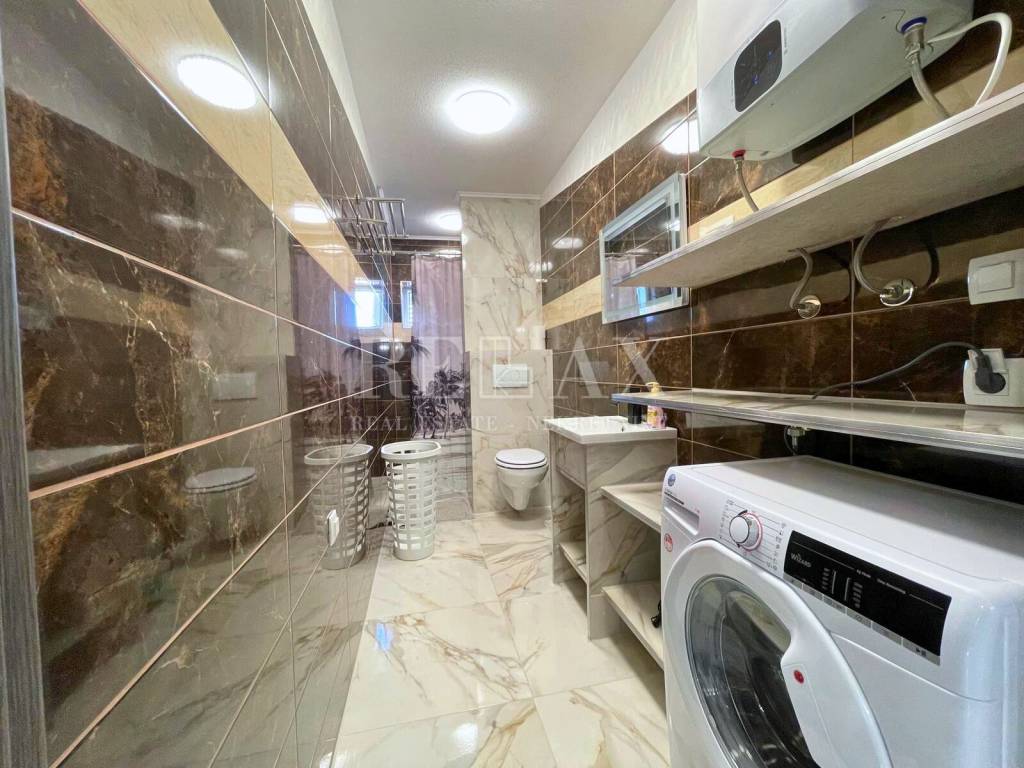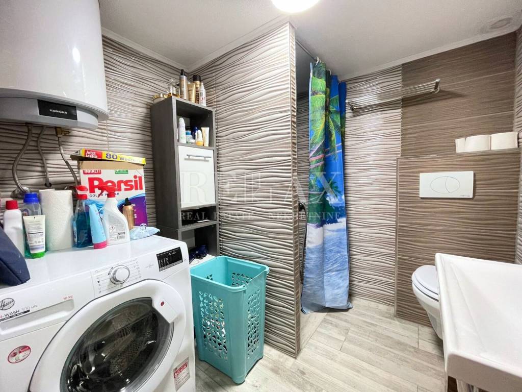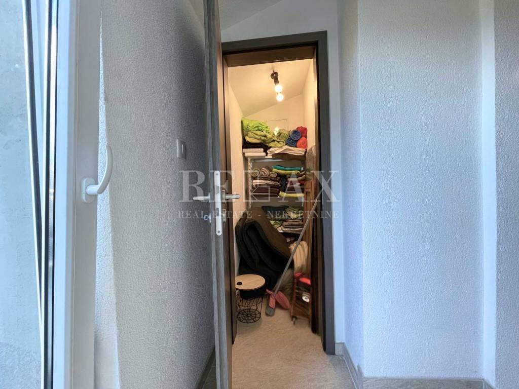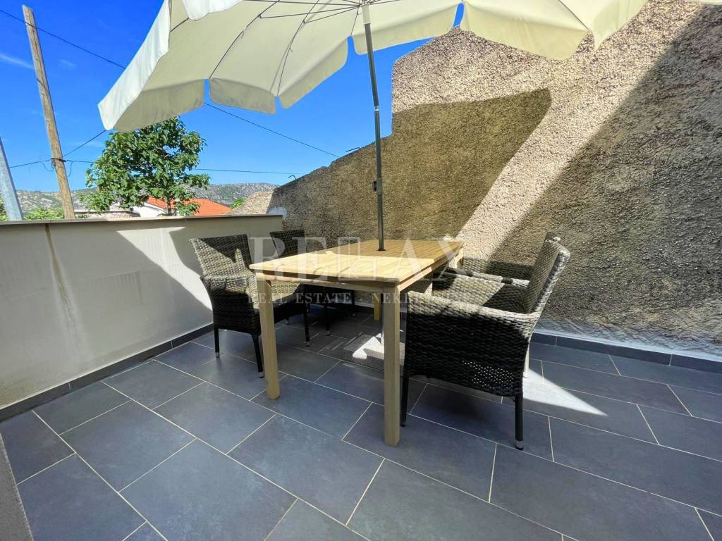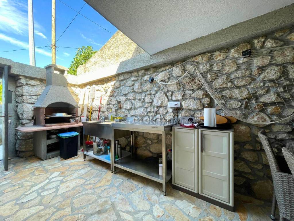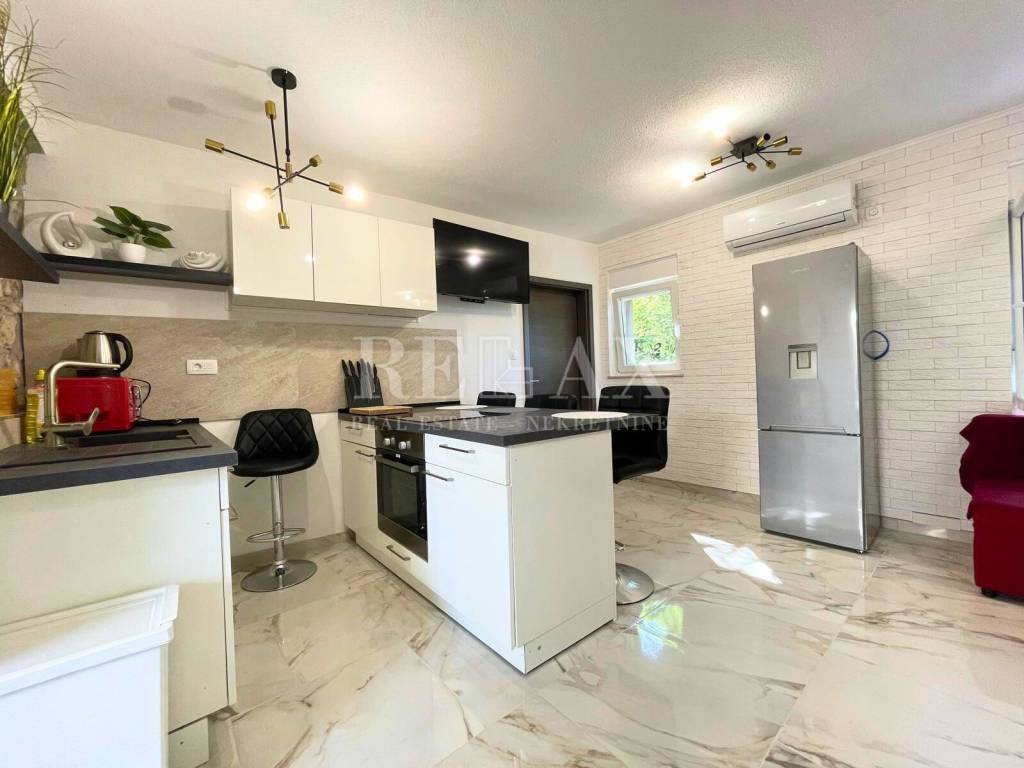 Kuća, ukupne kvadrature 106,38 m2, te dodatne okućnice od 125m2, idealna je za obiteljski život ili kao investicija za turistički najam. Sastoji se od dva odvojena stana. U prizemlju, površine 47,75 m2, nalazi se stan sa jednom spavaćom sobom, kupaonicom, dnevnim boravakom , open space kuhinjom s blagovaonicom te prekrasna terasa s roštiljem, savršena za druženja na otvorenom. Dodatni prostor za pohranu osiguran je ostavom.