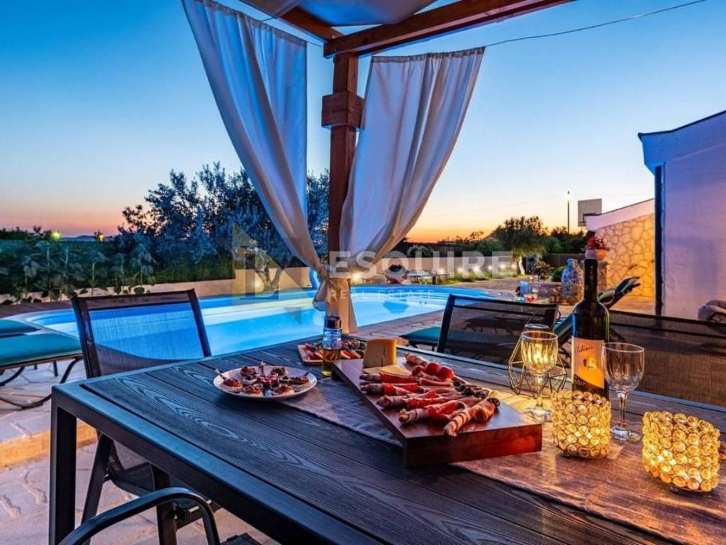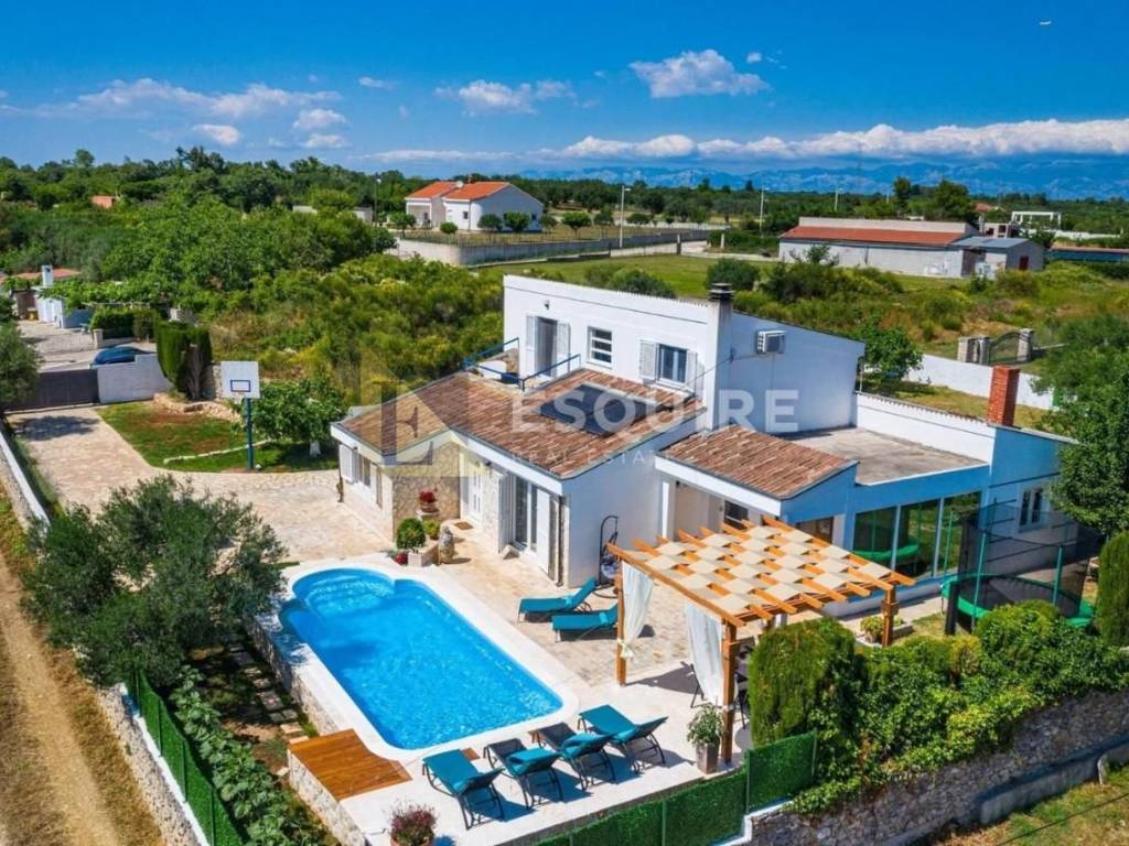 Prodaje se kuća s prekrasnim pogledom na grad Zadar, smještena na zemljištu od 1.200 m². Kuća ima površinu od 300 m², a sastoji se ukupno 10 prostorija od čega je 5 spavaćih soba plus jedna pomoćna prostorija, te zasebnog namještenog stana/apartmana od 33 m². Kuća ima dječje igralište, dok se gosti mogu opuštati u vrtu ili na terasi uz bazen.
