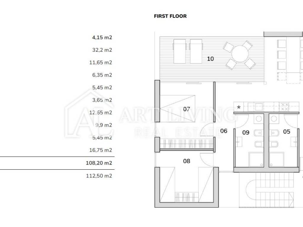 * Prvi kat = 108,20 m2 (91,45m2 prostora + 16,75m2 terase)