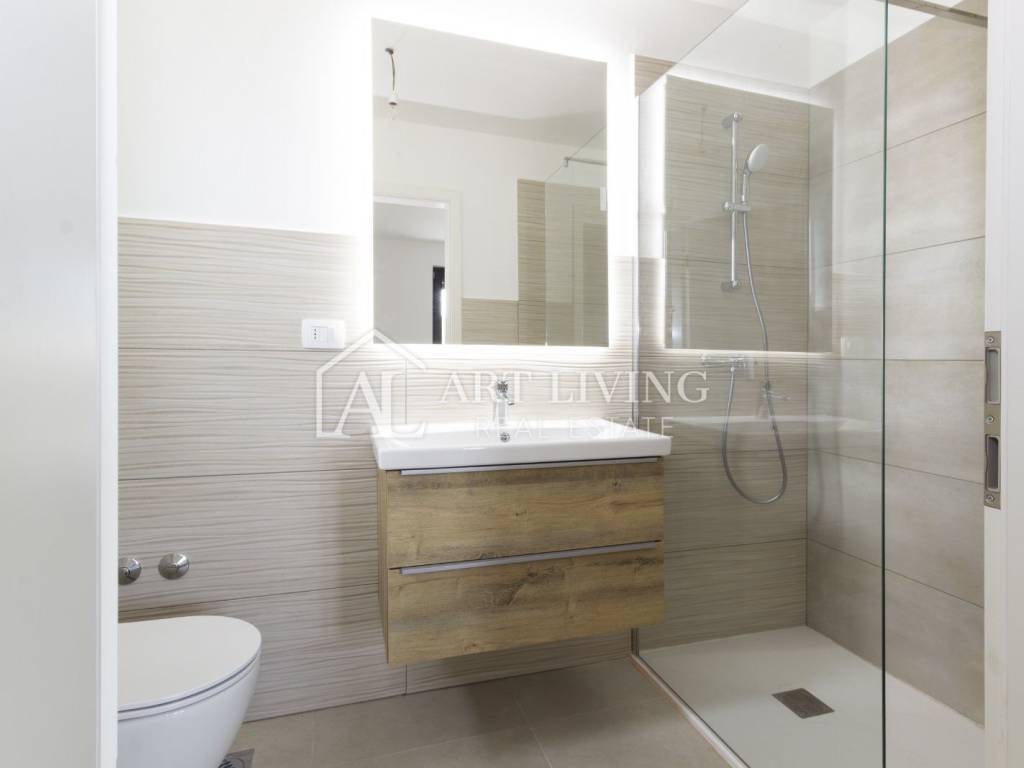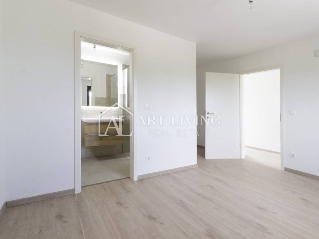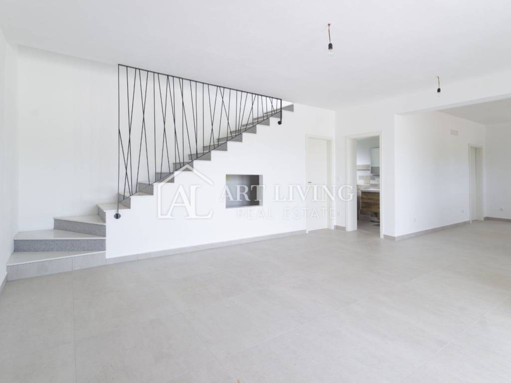 Unutarnje stepenište vodi nas na 1. kat ukupne netto površine 72,60 m2, gdje su smještene 3 spavaće sobe, svaka sa vlastitom kupaonom te prostrana terasa ukupne površine 12,77 m2 sa koje se pruža lijepi pogled na stari grad Labin