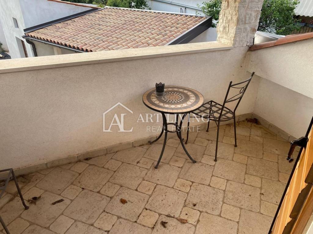 Na međukatu kuće smjestilo se dodatno prostrano kupatilo dok nas kvalitetno unutarnje stepenište vodi na prvi kat kuće gdje se nalaze dvije prostrane dvokrevetne spavaće sobe, jedna s terasom s kamenim stupovima i krovom s koje se pruža pogled na more.