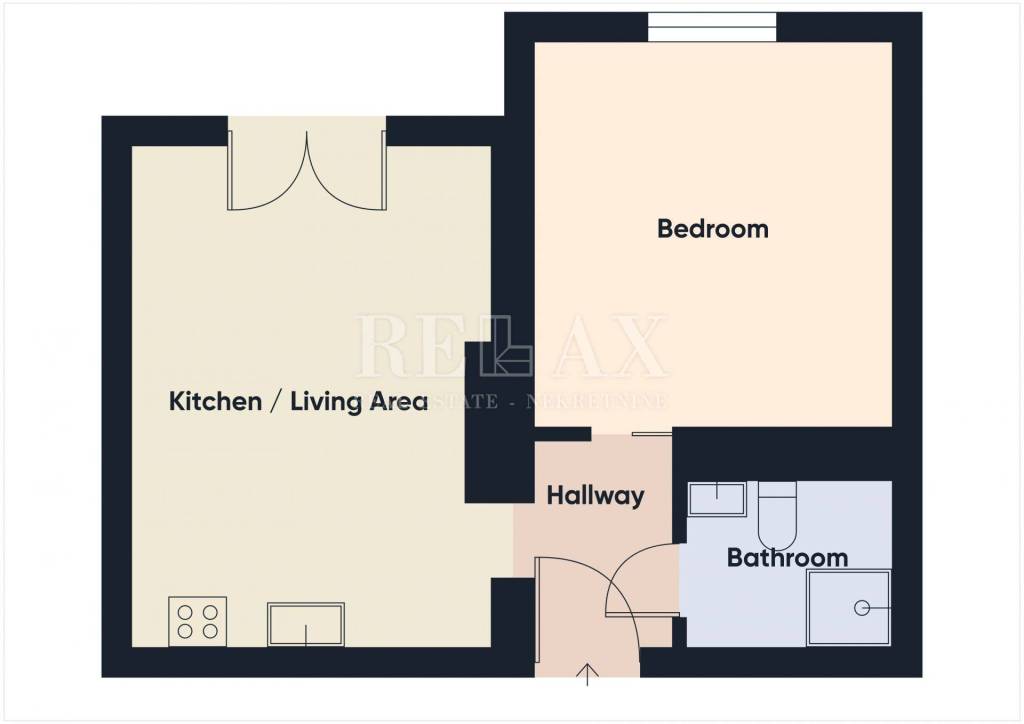 Stan površine 40 m² odlično je raspoređen i sastoji se od ulaznog hodnika, kupaonice, spavaće sobe, dnevnog boravka, kuhinje i blagovaonice.
