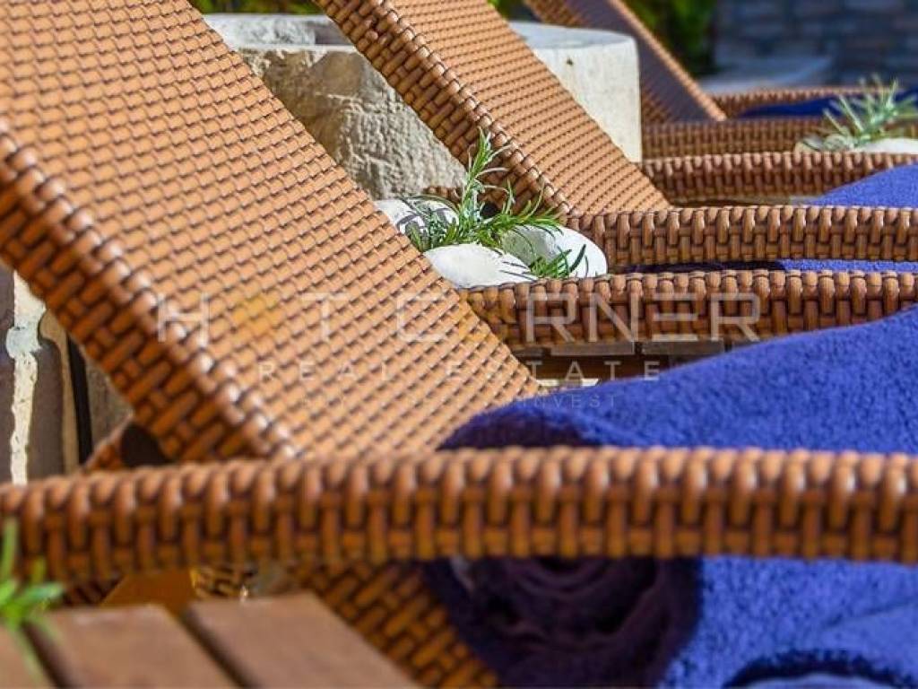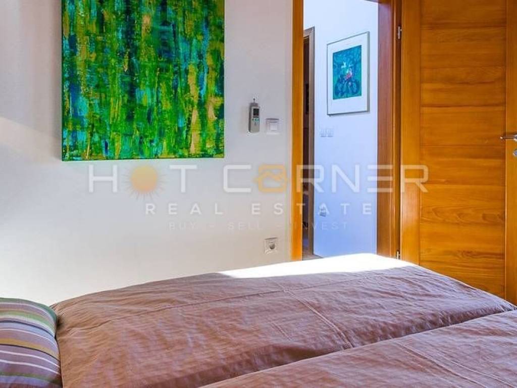 Oprema kuće: klima uređaj u svakoj spavaćoj sobi te u dnevnom boravku, podno grijanje u dnevnom boravku te u kupaonoma, 2 otvorena kamina, kupaone sa walk-in tuš kabinama i bideima, dnevni boravci su opremljeni sa Flat screen televizorima i ozvučenjem, kompletno opremljene kuhinje sa frižiderima, hladnjacima, frižiderima za piće, perilicama za suđe, 2 vanjska parkirna mjesta. Cijena 990.000 €.