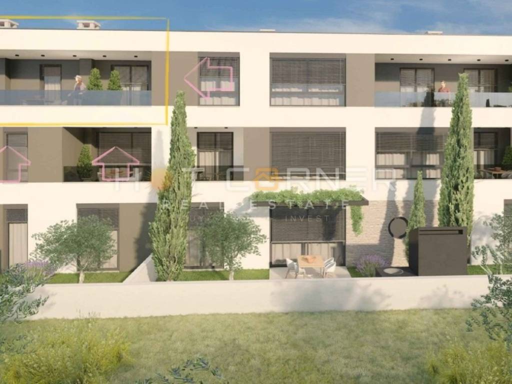 Na prekrasnoj mirnoj lokaciji, okruženoj maslinicima i obiteljskim kućama, u 03/2025 je krenula gradnja otmjene novogradnje sa samo 9 stanova. Stanovi će biti useljivi do ljeta 2026. godine.