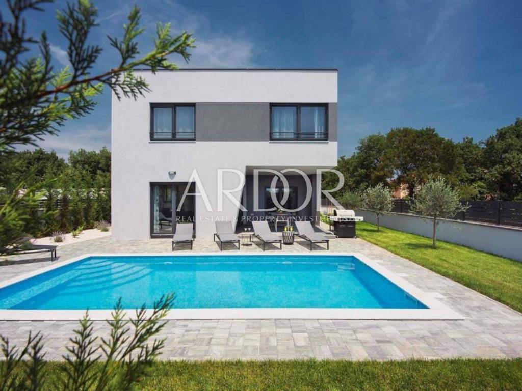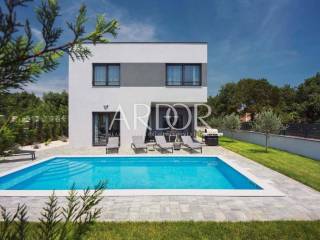 Na prodaju je moderna nova kuća površine 180 m² neto, smještena u mirnom naselju nadomak Pule na zemljištu površine 550 m2. Nalazi se na samom rubu građevinske zone i upravo zato pruža poseban osjećaj privatnosti, mira i slobode. Okružena zelenilom i poljoprivrednim zemljištem, a tek nekoliko minuta vožnje od centra grada i mora, ova nekretnina spaja najbolje od dva svijeta: tišinu prirode i blizinu svih sadržaja.