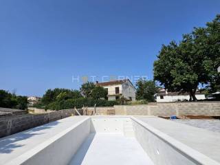 Bazen (dimenzija 4x10 m) sa sun deck-om od 100 m² savršen je za sunčanje, obiteljske aktivnosti ili uživanje u privatnosti. Ovaj vanjski prostor nudi maksimum udobnosti, s puno prostora za opuštanje i uživanje u toplim ljetnim danima.