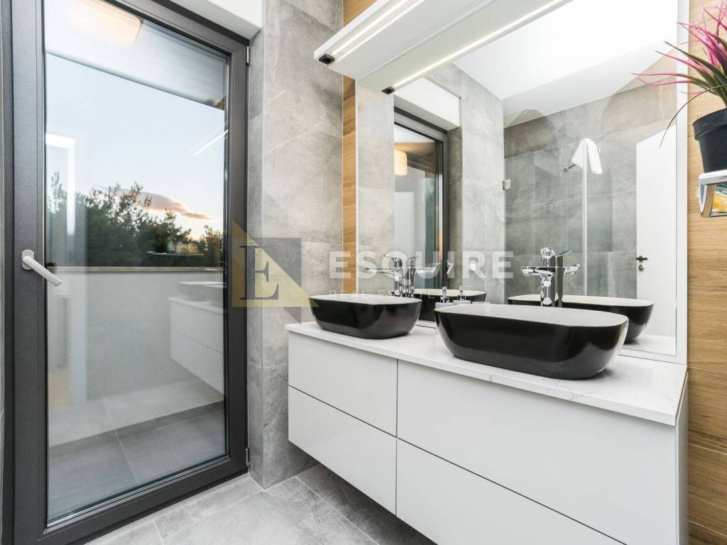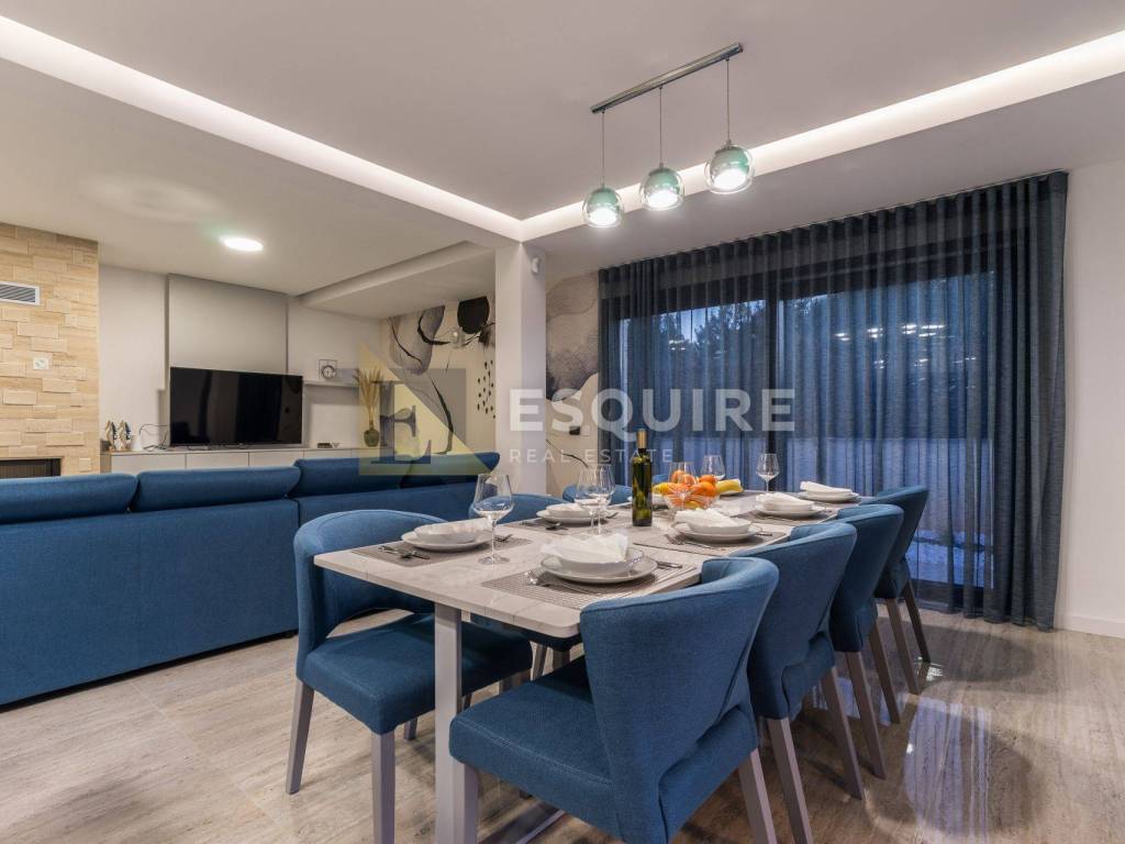 Vila se prostire na dvije etaže i odiše suvremenom estetikom, pročišćenim linijama i pažljivo biranim materijalima. Interijer je opremljen modernim namještajem i vrhunskim završnim obradama koje stvaraju dojam elegancije i luksuza.