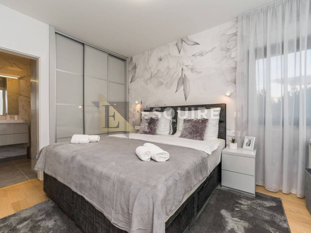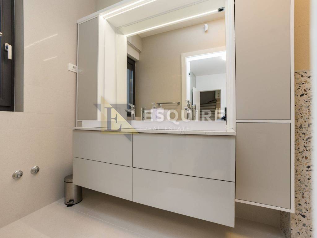 Kat: četiri prostrane spavaće sobe i četiri elegantno uređene kupaonice. Dvije sobe imaju en-suite kupaonice, dok glavna spavaća soba uključuje garderobu i izlaz na balkon s pogledom na more.