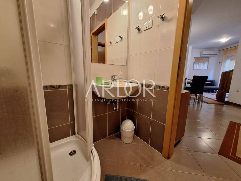 Sastoji se od dvije spavaće sobe, velikog dnevnog boravka s blagovaonicom i izlazom na prostranu terasu, odvojene kuhinje te kupaonice s WC-om. Dnevna zona otvorenog koncepta stvara ugodan i funkcionalan prostor idealan za obiteljski život ili opuštanje.