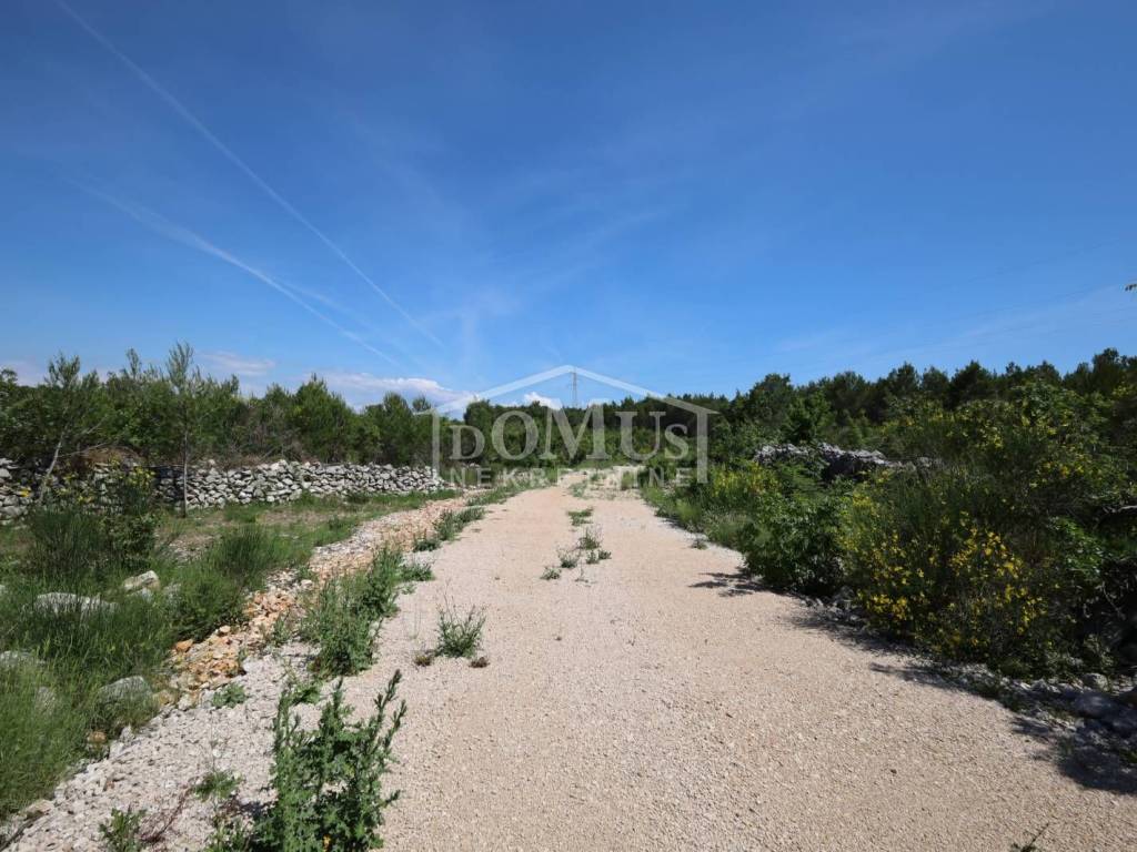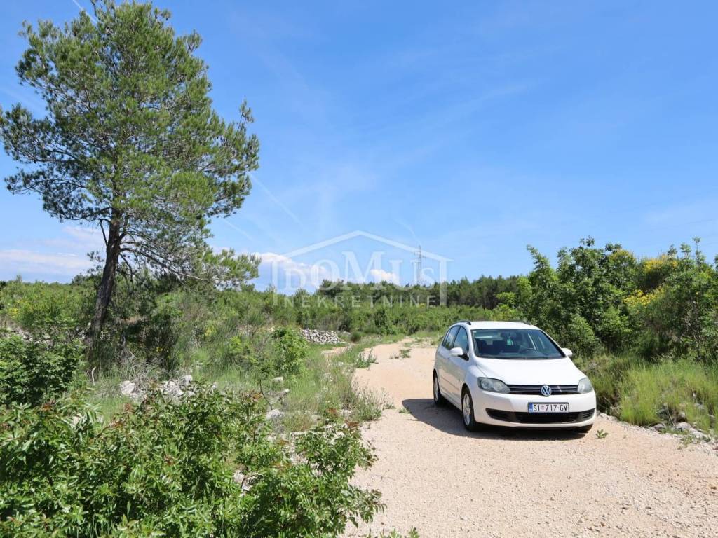 Vodice – nedaleko zaobilaznice, poljoprivredno zemljište površine 2.500 m2. Zemljište je ravno, dijelom ograđeno suhozidom, nije uređeno ni održavano, na zemljištu se nalazi borovi i nisko raslinje. Parcela je nepravilnog oblika, nalik slova „L“. zemljišta je cca 80m širine, te 25m dužine. Prilazni put dobro prohodan, širine oko 7m. Udaljenost do centra 3,7 km, do mora 4km.