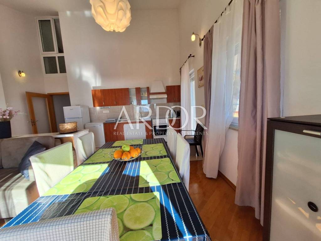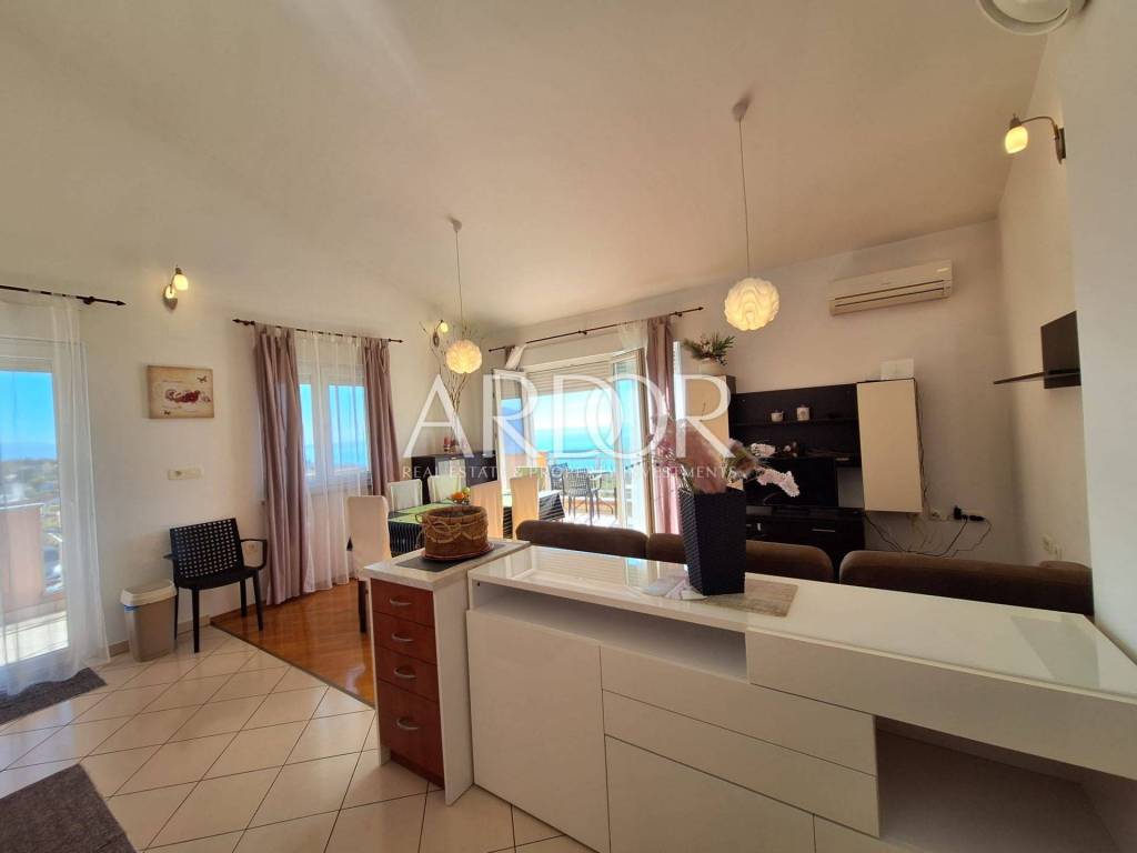 Središnji dio stana zauzima veliki open-space dnevni boravak povezan s kuhinjom i blagovaonicom, iz kojeg se izlazi na prekrasan balkon u obliku slova L. Balkon nudi neometan pogled na more, idealan za jutarnje kave, druženja ili uživanje u zalascima sunca.
