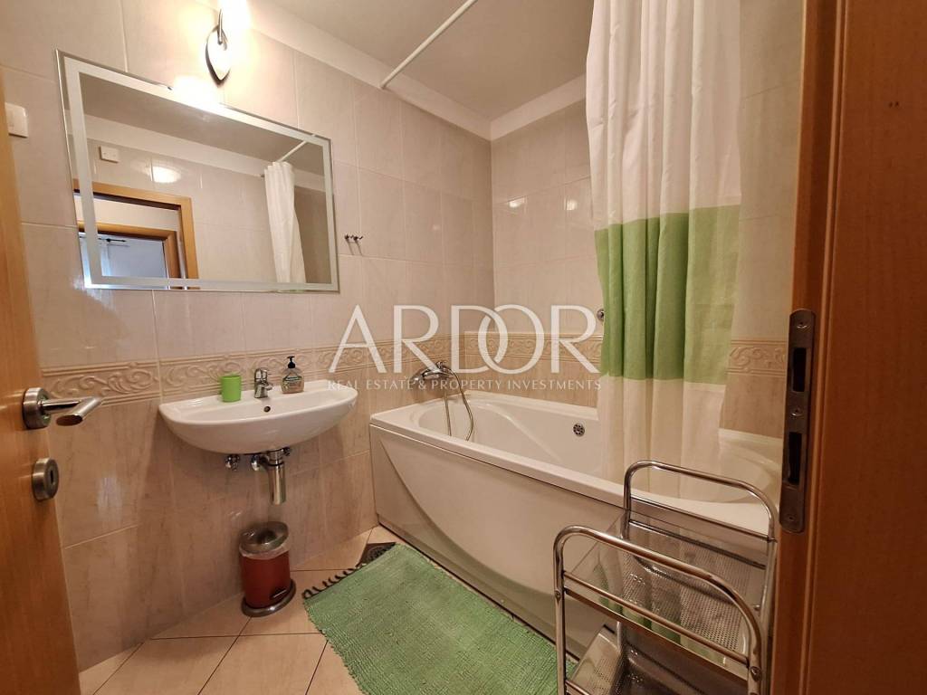 Stan ima kupaonicu s WC-om te dodatni odvojeni toalet, a grijanje je riješeno putem struje i klima uređaja, što osigurava udobnost tijekom cijele godine. Zgrada je izvedena prema visokim energetskim standardima, što garantira niske režijske troškove.