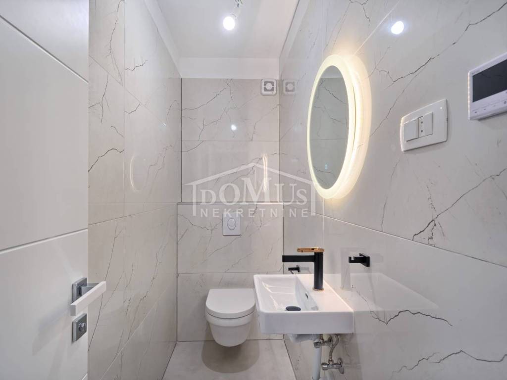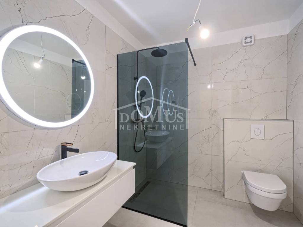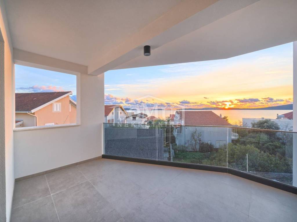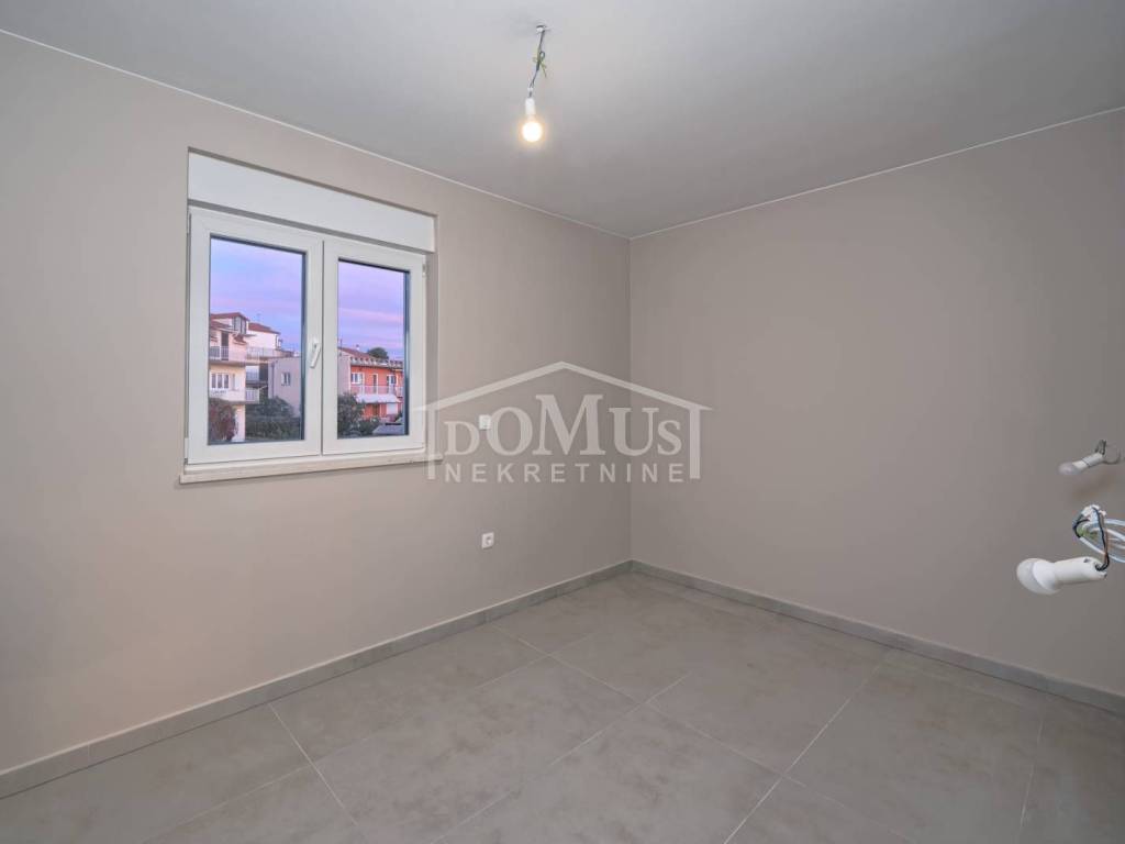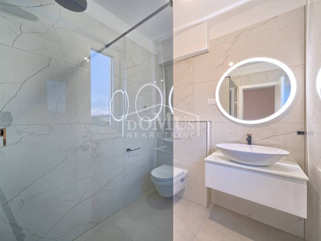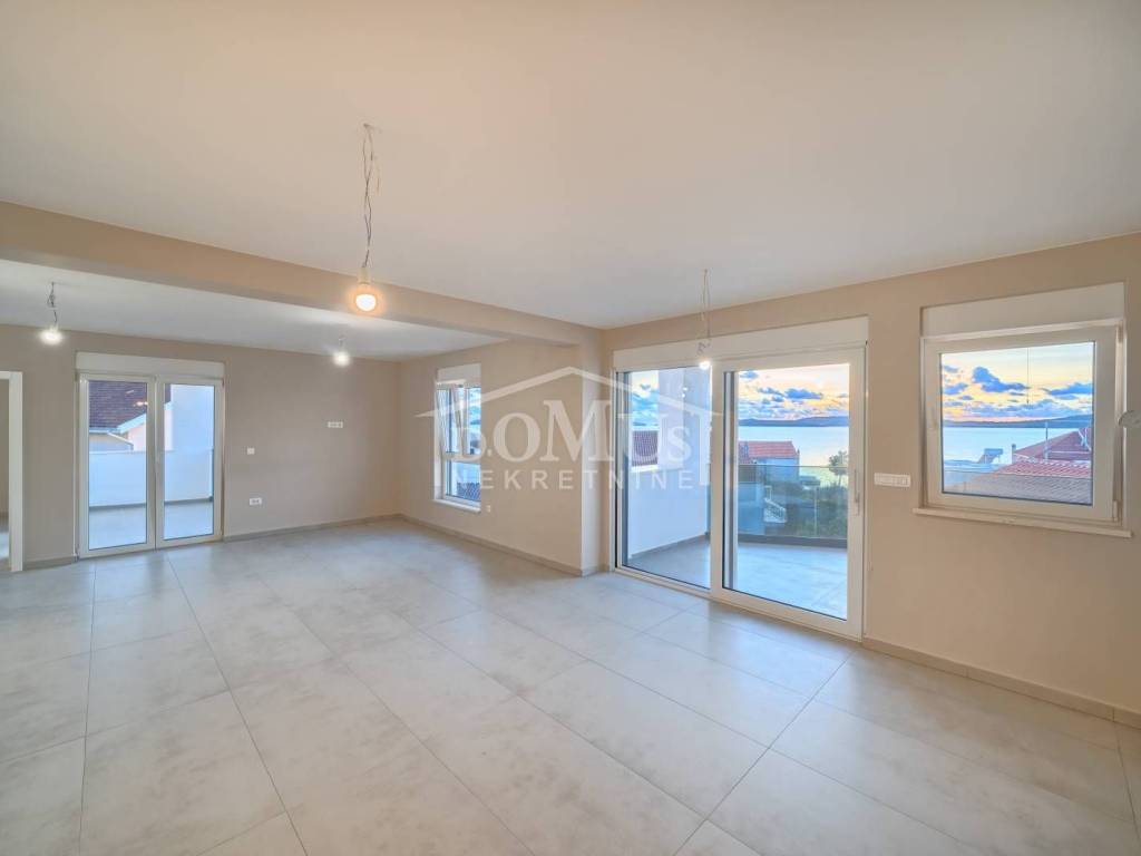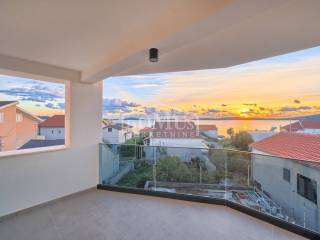 Brodarica, novogradnja, 150m od mora, penthouse sa ukupno 112,39m2 korisne površine. Isti se nalazi na 2.katu stambene zgrade koja ima ukupno tri etaže sa ukupno 5 stambenih jedinica, a orijentiran je na jugoistočnu stranu. Apartman površine 109,99m2 se sastoji od hodnika, predsoblja, kuhinje, blagovaone i dnevnog boravka u cjelini, dvije terasa od 10,45m2 i 11,25 m2 s pogledom na more, 4 spavaće sobe, 3 kupaonice i wc. Apartmanu pripadaju dva parkirna mjesta. Građen je od visoko kvalitetnih materijala keramike i sanitarija, klima uređaj u dnevnom boravku, podno grijanje u kupaonici, električni podizači roleta, komarnici, portafon. Kupac je oslobođen plaćanja poreza na promet nekretnina.