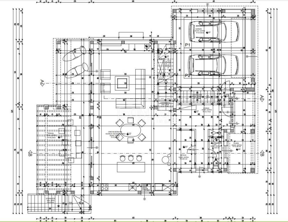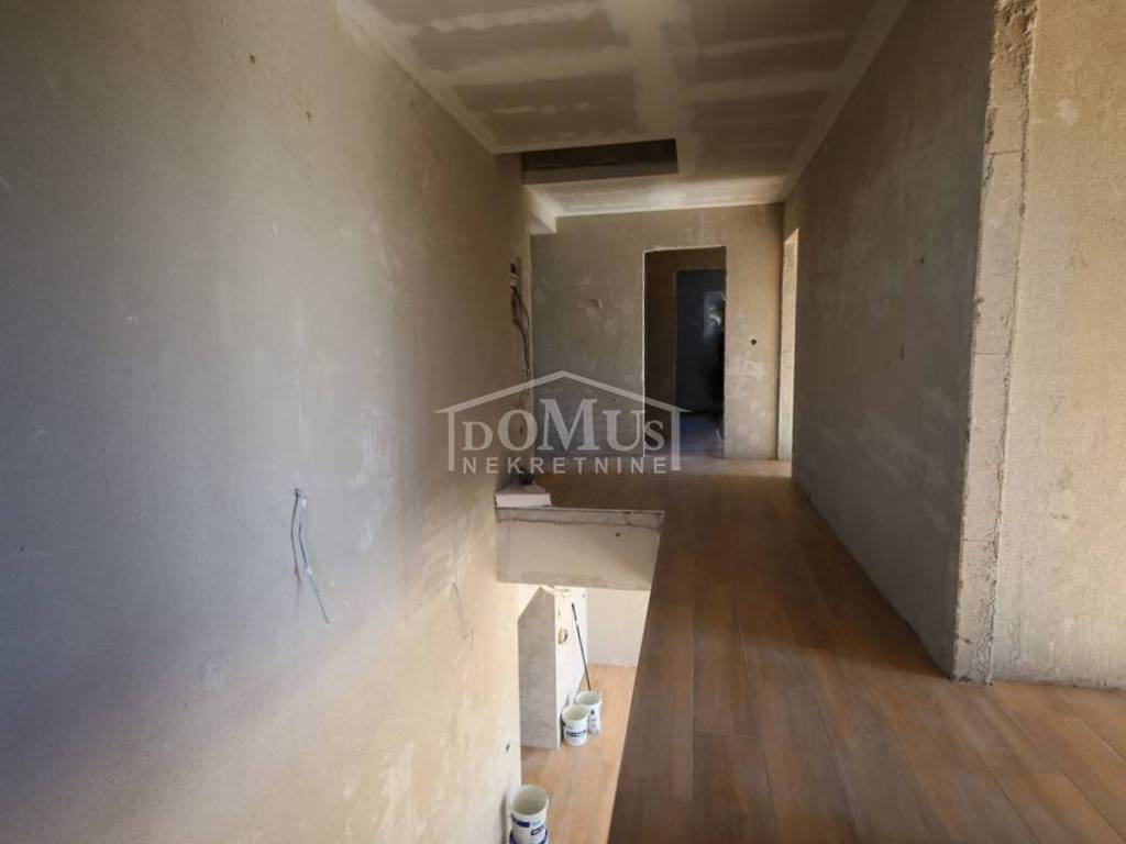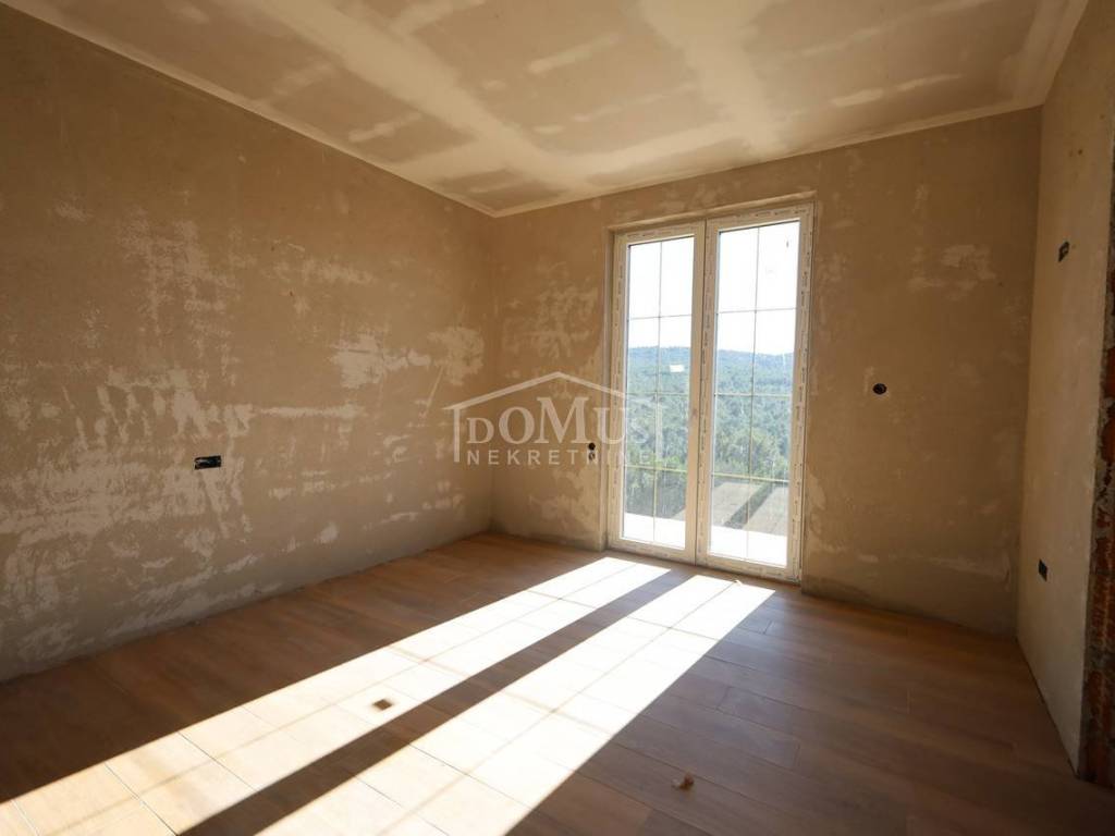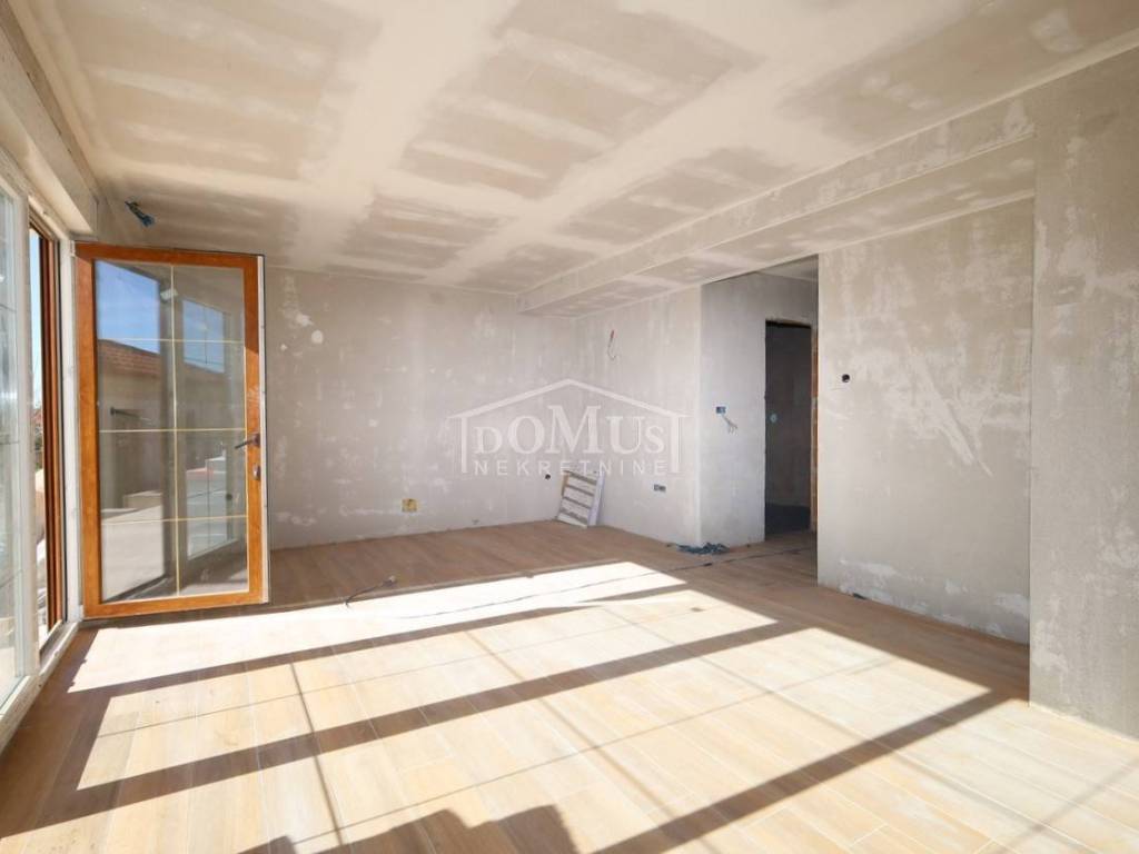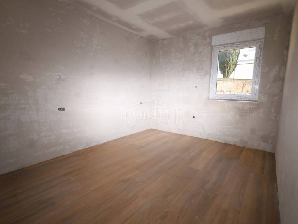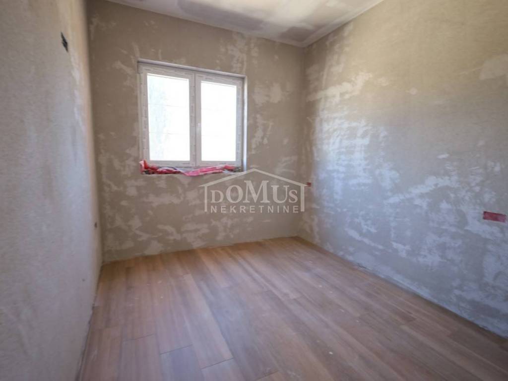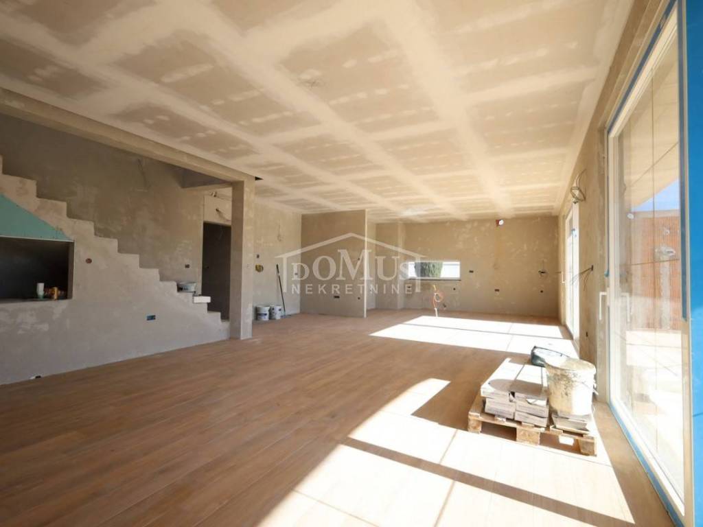 Novogradnja, komforna obiteljska kuća ukupne korisne površine 375,95m2 sa garažom i pomoćnim objektom u dvorištu i bazenom površine 32m2. U suterenu kuće se nalazi hodnik i stepenište, ostava, spremište i konoba (prostor za druženje), a poseban ulaz za kuhinju sa blagovaonom, hodnik, kupaonicu, dvije spavaće sobe, te vanjsko spremište. U prizemlju se nalazi glavni ulaz u kuću, gdje je smještena garaža 37,50m2 sa ostavom i spremištem, stepenište, wc, ostava, veliki dnevni boravak sa kuhinjom i blagovaonom sa izlazom na veliku terasu 45, 25m2. Unutarnje stepenice vode na 1. kat gdje se nalazi hodnik, 3 spavaće sobe, svaka sa svojom garderobom i izlazom na terasu dok jedna soba ima i svoju kupaonu, zasebna kupaona i praonica. Parcela je površine 1.193m2, dvorište je kompletno ograđeno, te ima kaskadne vrtove, bazen i pomoćni objekt 7,8m2 i natkrivene terase 22,82 m2. Kuća je u visokom roh bau, izvršena priprema podnog grijanja na dizalicu topline i klimatizaciju te istoj nedostaje unutarnja stolarija, bojanje, i sanitarije. Cijena se odnosi na ovaj stupanj izgrađenosti, a za kompletno završen objekt (uključujući i fasadu) i ishodovane uporabne dozvole, cijena po dogovoru. Do mora 4,4 km, a do Šibenika 11 km.