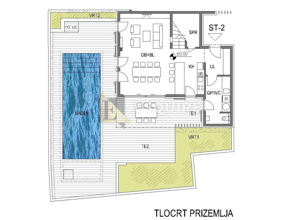 PRIZEMLJE (zatvoreno 59,09 m² / otvoreno 172,89 m²)
