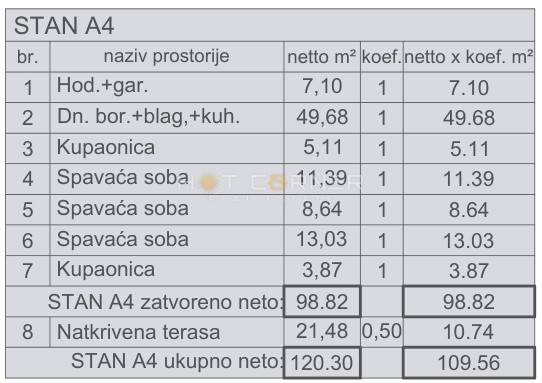 - Obračunska neto površina stana: 109,56 m²