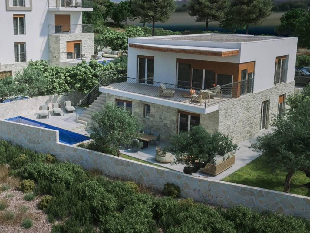 Ražanj, 200 m od mora i plaže, novogradnja, slobodnostojeća obiteljska vila sa 195,8 m² korisne površine, sagrađena na parceli od 698 m². Vila obiteljskog tipa, na dvije etaže: prizemlje + 1. kat.