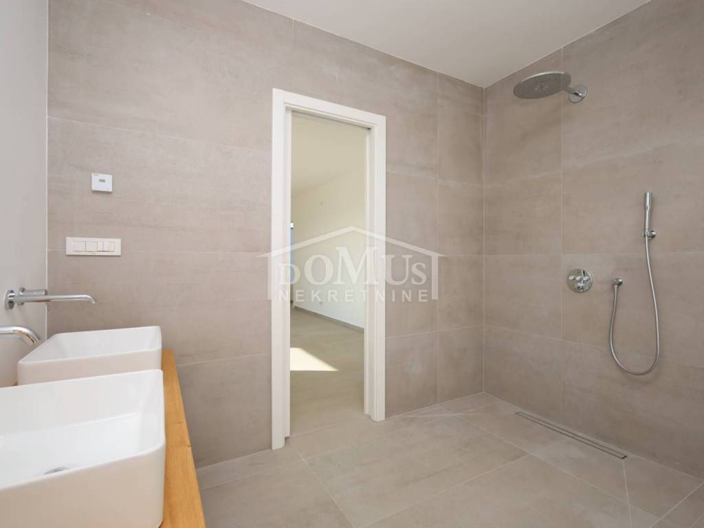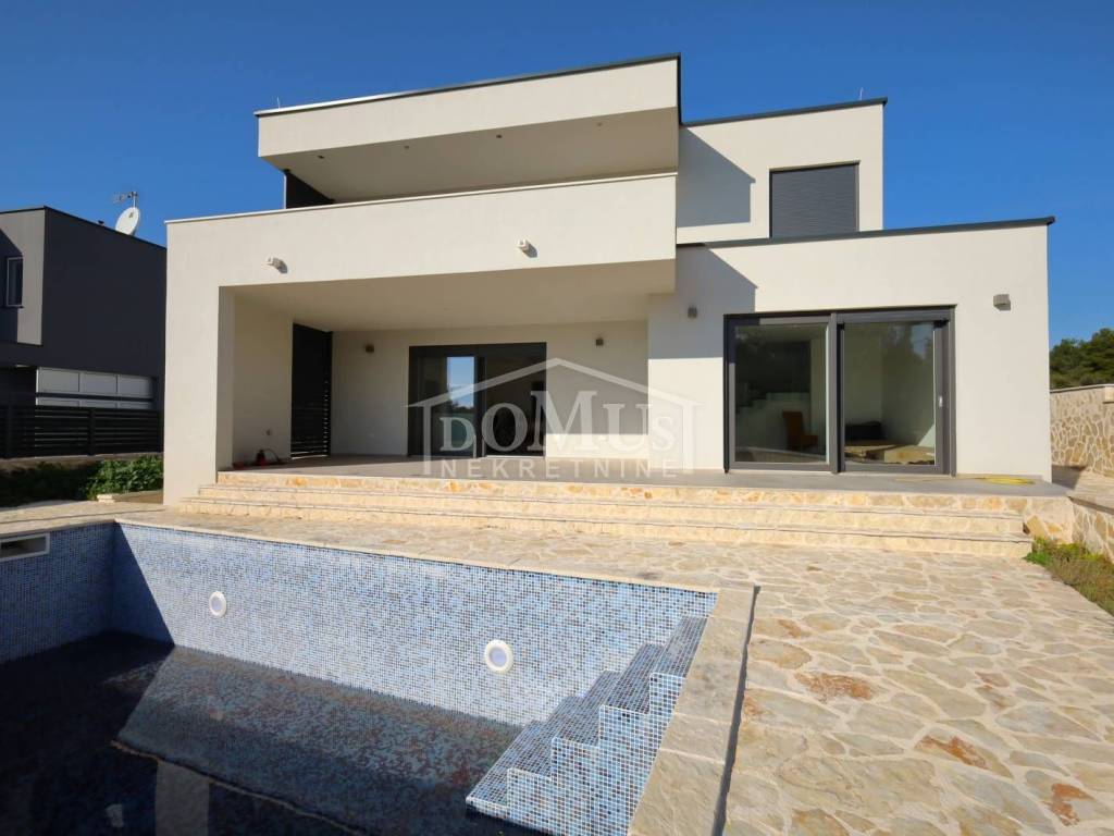 Moderna urbana vila u Brodarici, smještena u mirnom okruženju, udaljena 950 m od šljunčane plaže. Izgrađena je prema visokim standardima kvalitete i odmah je useljiva.