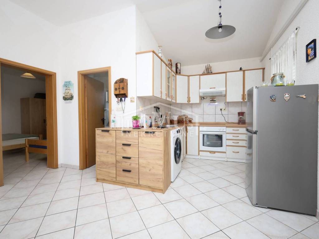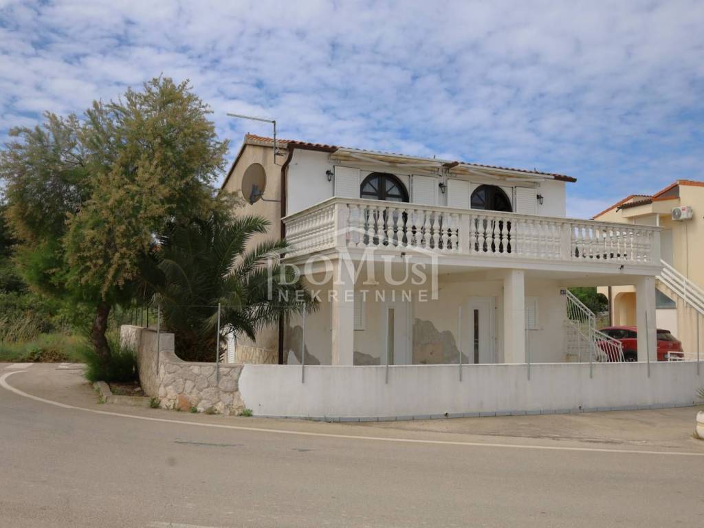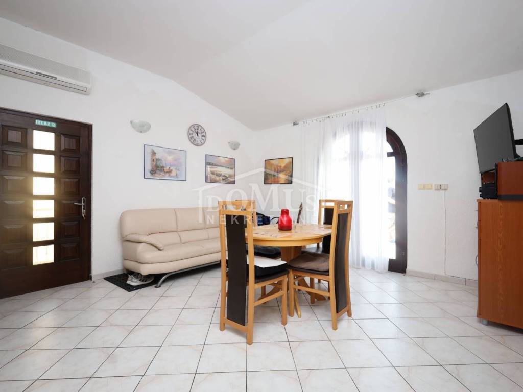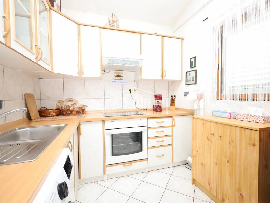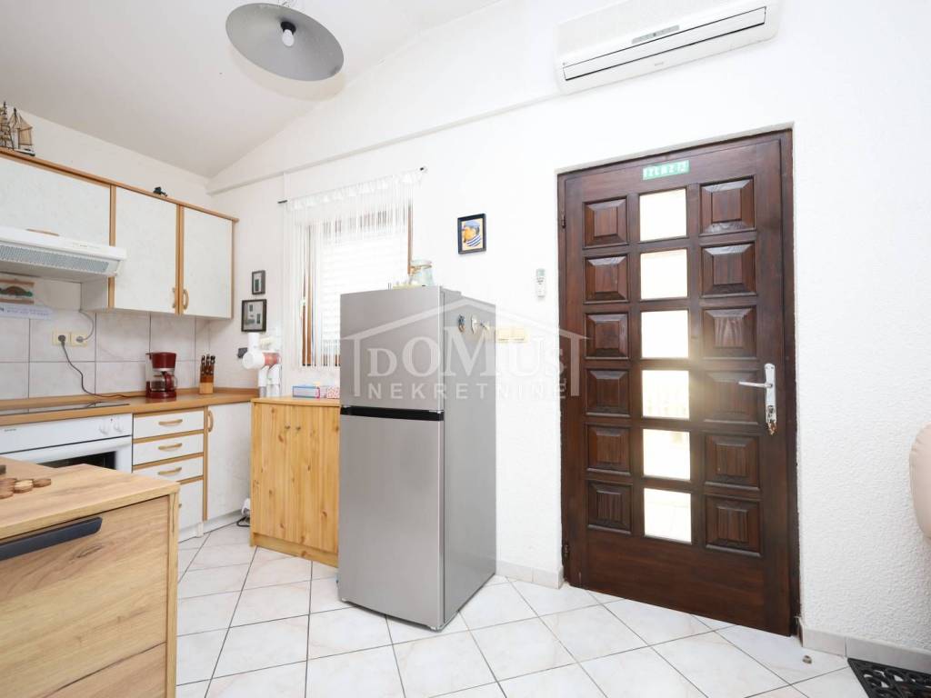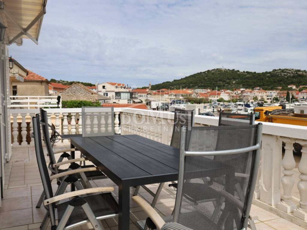 Jezera na otoku Murteru, u 1. redu do mora, u centru mjesta s pogledom na more i marinu. Etaža manje kuće / stan od 62,12 m² korisne površine nalazi se na prvom katu, s pripadajućim dvorištem. Stan se sastoji od vanjskog stubišta, podesta, otvorenog dnevnog boravka s kuhinjom i blagovaonicom, kupaonice, dvije spavaće sobe te terase površine 22,50 m² s koje se pruža neometan pogled na more, marinu i cijelo mjesto. Stanu pripada dio okućnice od 39 m², koji je dostatan za dva vozila. Stan je odmah useljiv, u potpunosti namješten, a namještaj je uključen u cijenu nekretnine.
