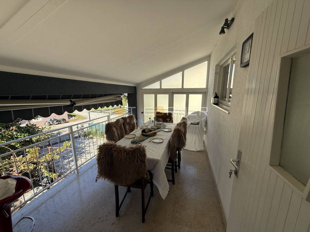 Sam stan ima 133 m2 a sastoji se od: ulaznog spremišta u prizemlju, male radne sobe na međukatu, velike natkrivene zapadno orijentirane terase površine cirka 12 m2, koja se može koristiti kao trpezarija, predsoblje, prostrana kuhinja s blagovaonom, dnevni boravak, 3 spavaće sobe, kupaona, gostinjski WC, još jedna terasa površine cirka 8 m2, koja se pruža duž cijele stražnje strane stane u smjeru istoka i sa koje se pruža prekrasan pogled na okolnu prirodu.