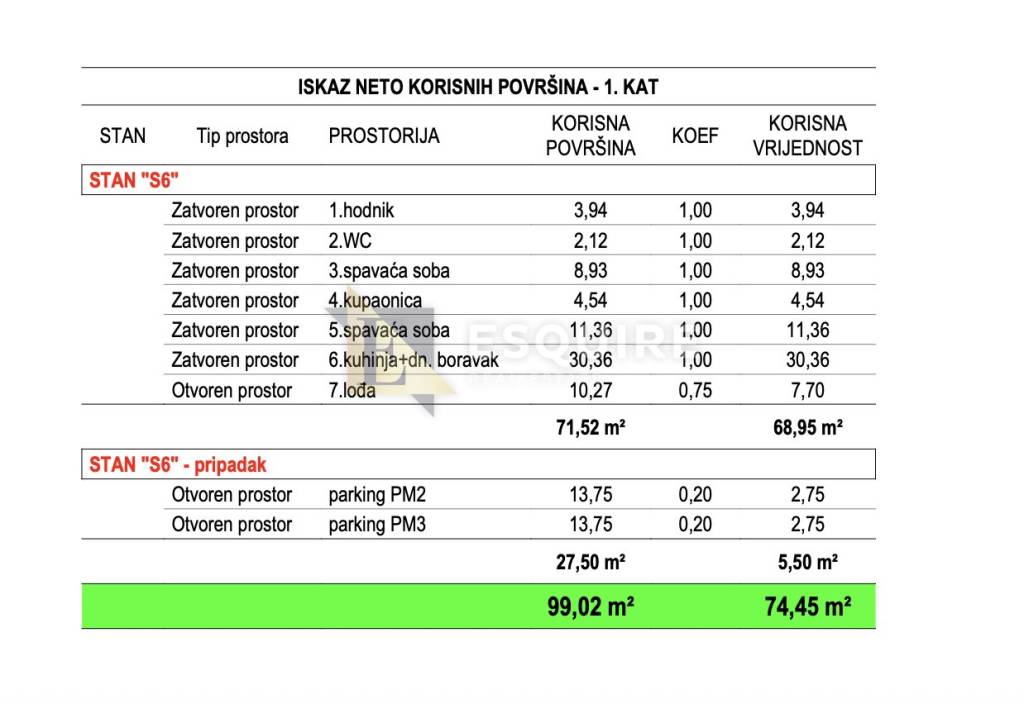 Ukupna površina s pripadajućim prostorima: 99,02m²