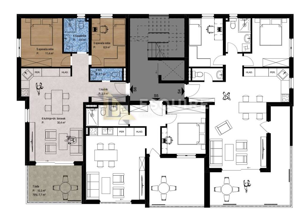 Stan S6 nalazi se na 1. katu, a raspored prostorija čini: