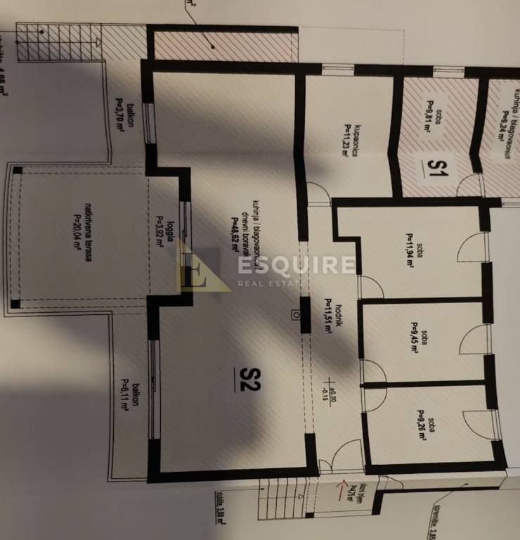 - tri spavaće sobe (11,94, 9,45 i 9,26m2),