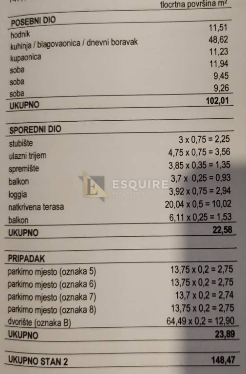 BIBINJE - Prodaje se trosoban stan ukupne unutarnje površine 102,01 m², uz pripadajuća 4 parkirna mjesta od kojih su 3 natkrivena te spremište.