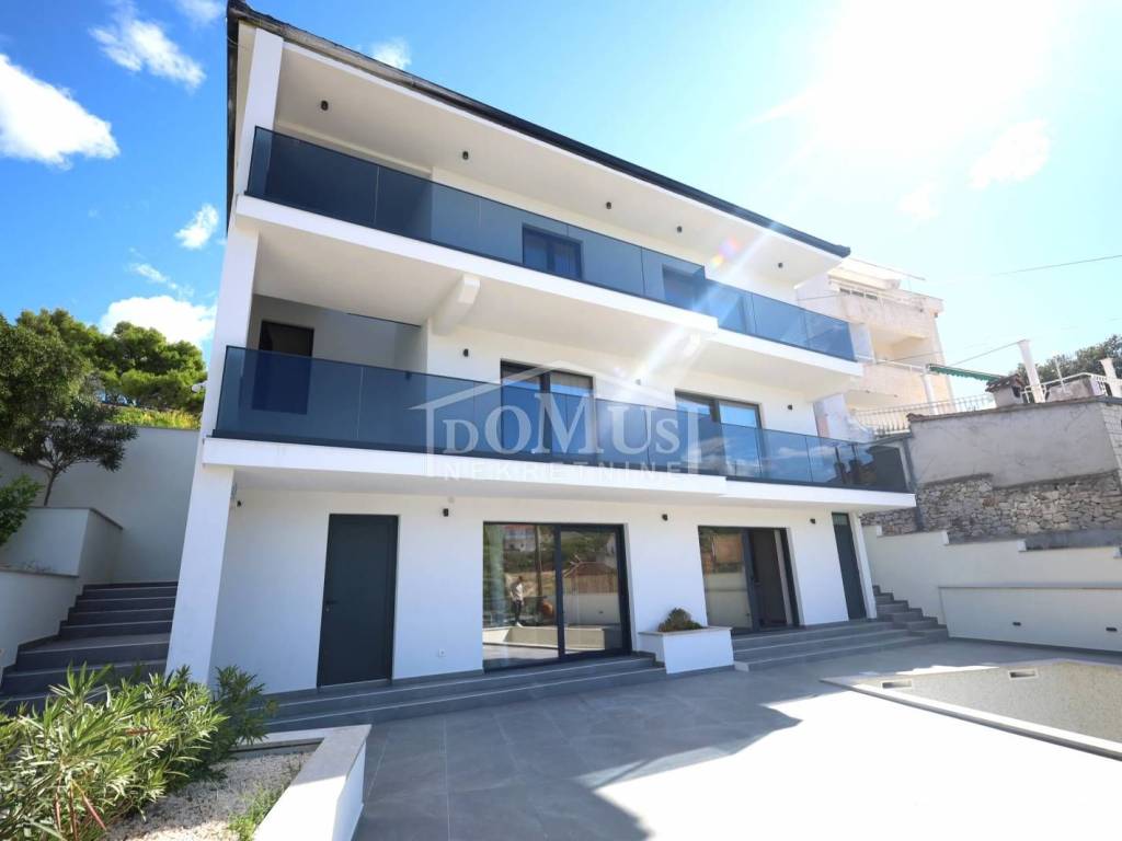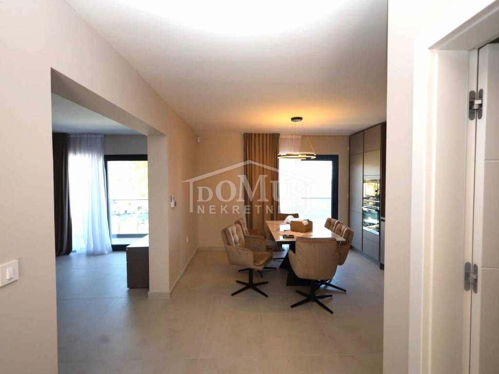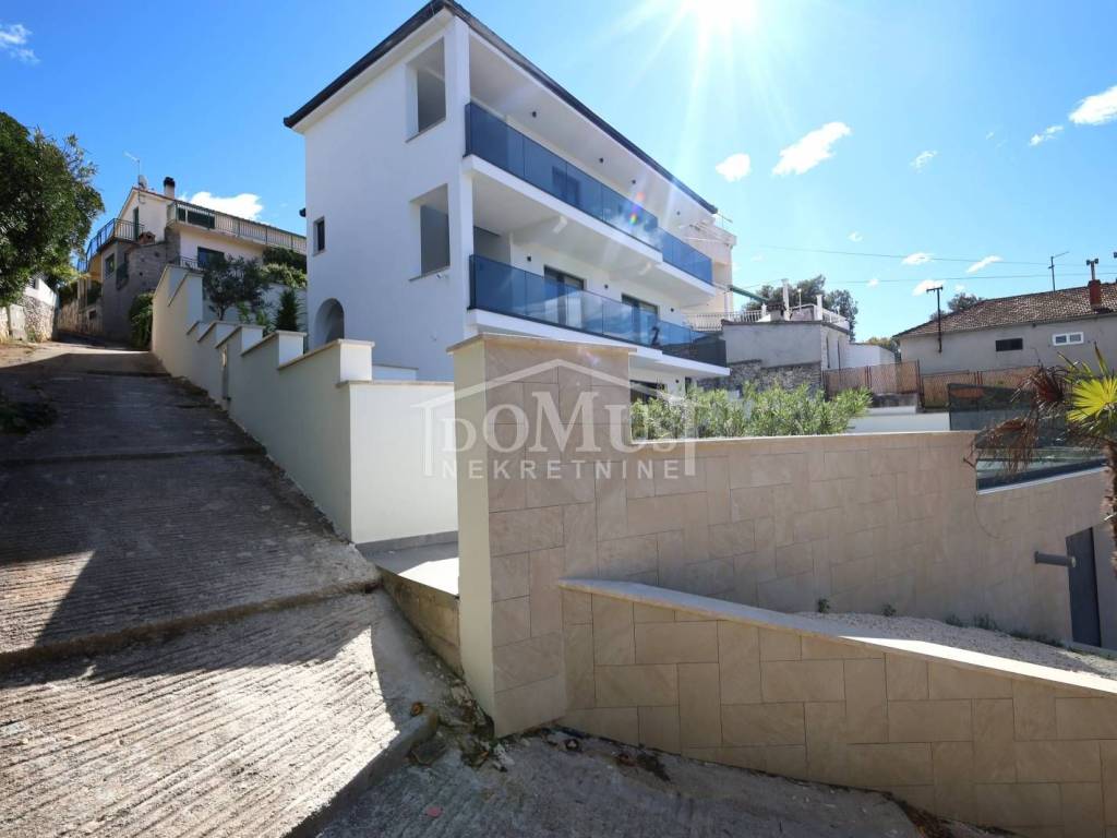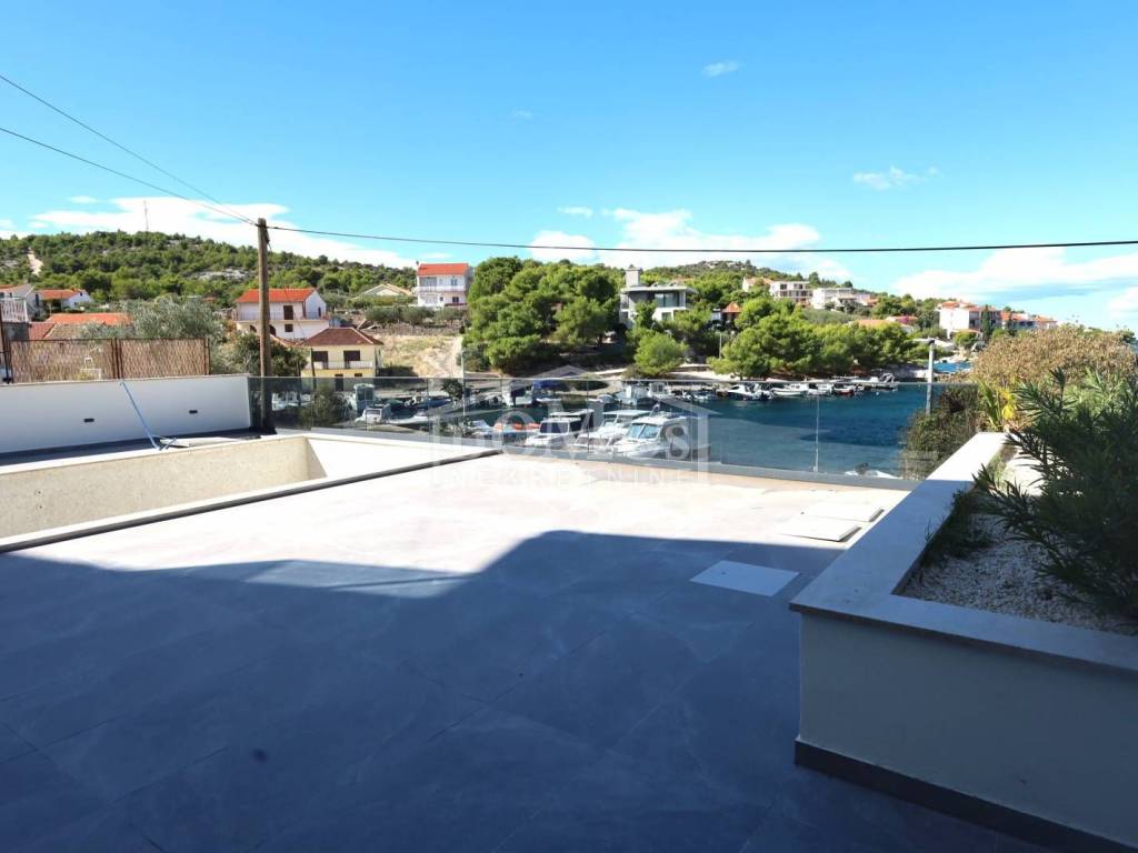 Ražanj, prvi red do mora, nalazi se vila moderne arhitekture i funkcionalnog rasporeda. Samostojeći objekt, na tri etaže ukupne korisne površine 231,07 m2 na parceli površine 398m2. Prizemlje se sastoji od kuhinje, blagovaonice, dnevnog boravka sa izlazom na sunčalište i bazen površine 40m2, jedne spavaće sobe i kupaonice. Poseban ulaz za 1. kat koji se sastoji od jedne spavaće sobe, kupaonice, kuhinje, blagovaonice i dnevnog boravka sa izlazom na terasu sa prekrasnim pogledom na more. Unutarnje stepenice vode na drugi kat gdje su tri prostrane spavaće sobe, svaka s vlastitom kupaonicom te natkrivena terasa sa prekrasnim pogledom na more. Vila je opremljena vrhunskim materijalima keramike i sanitarija, klimatizirana, dizalica topline za podno grijanje. Dvorište je ograđeno i popločano, tu je garaža kao i parkirni prostor. Udaljenost samo 300 m od plaže i 600 m od centra mjesta.