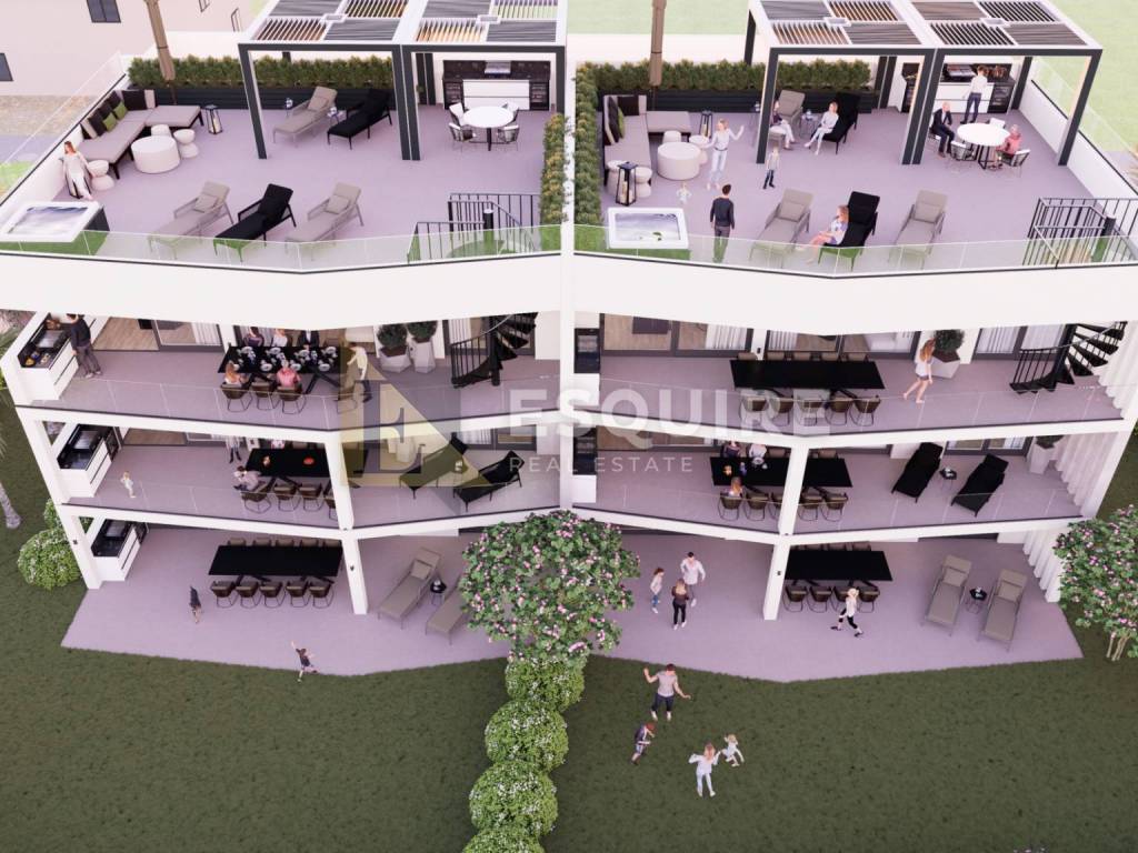 Iz svakog stana pruža se pogled na more, stanovima na 2. katu pripadaju i prostrane krovne terase, dok stanovima u prizemlju privatni vrtevi.