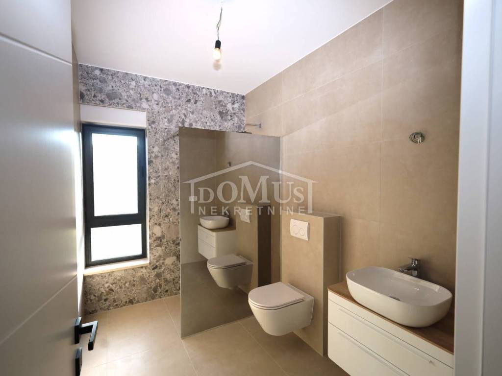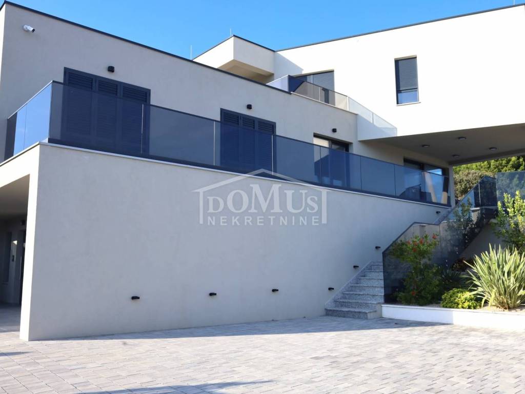 Vila je opremljena vrhunskim materijalima, keramikom i sanitarijama, klimatizirana, s dizalicom topline za podno grijanje. Dvorište je ograđeno i popločano, tu su smještena i vanjska parkirna mjesta dok je dio dvorišta uređen mediteranskim biljem. Vila je udaljena samo 150m od mora, a od centra mjesta 1500m.