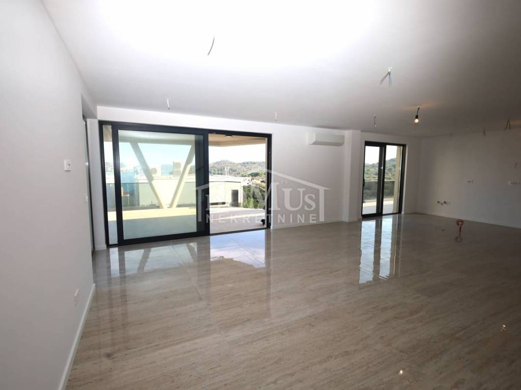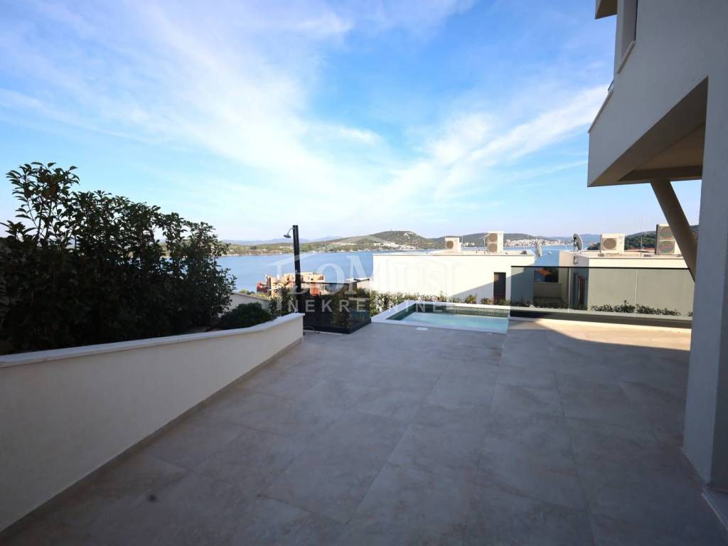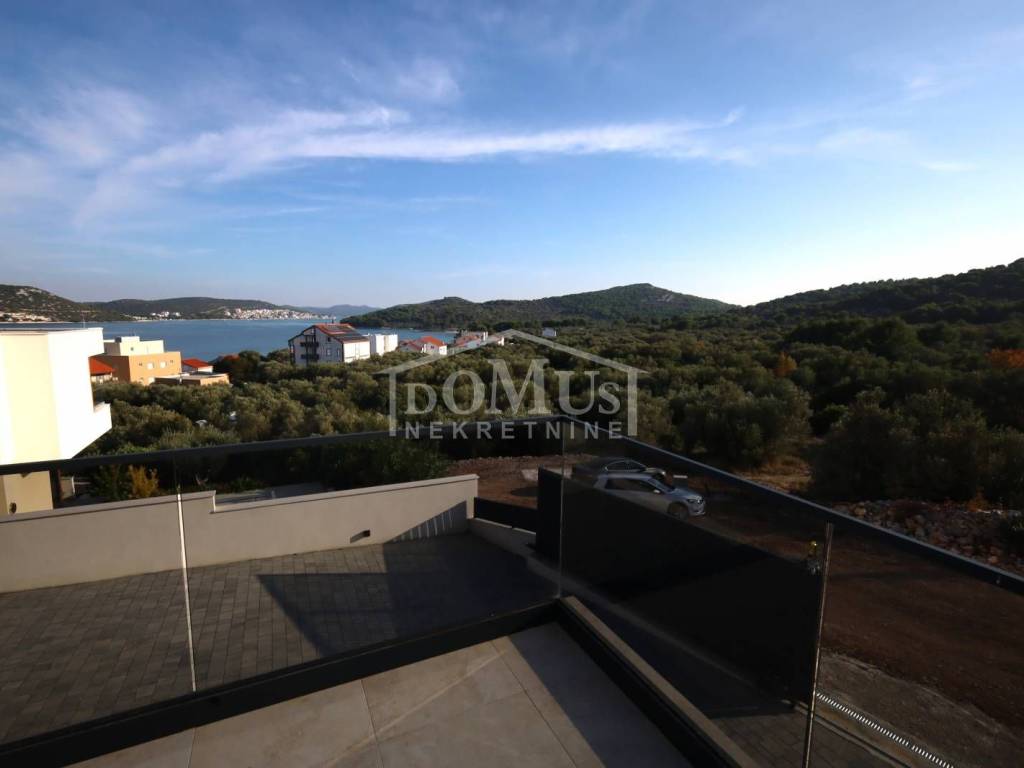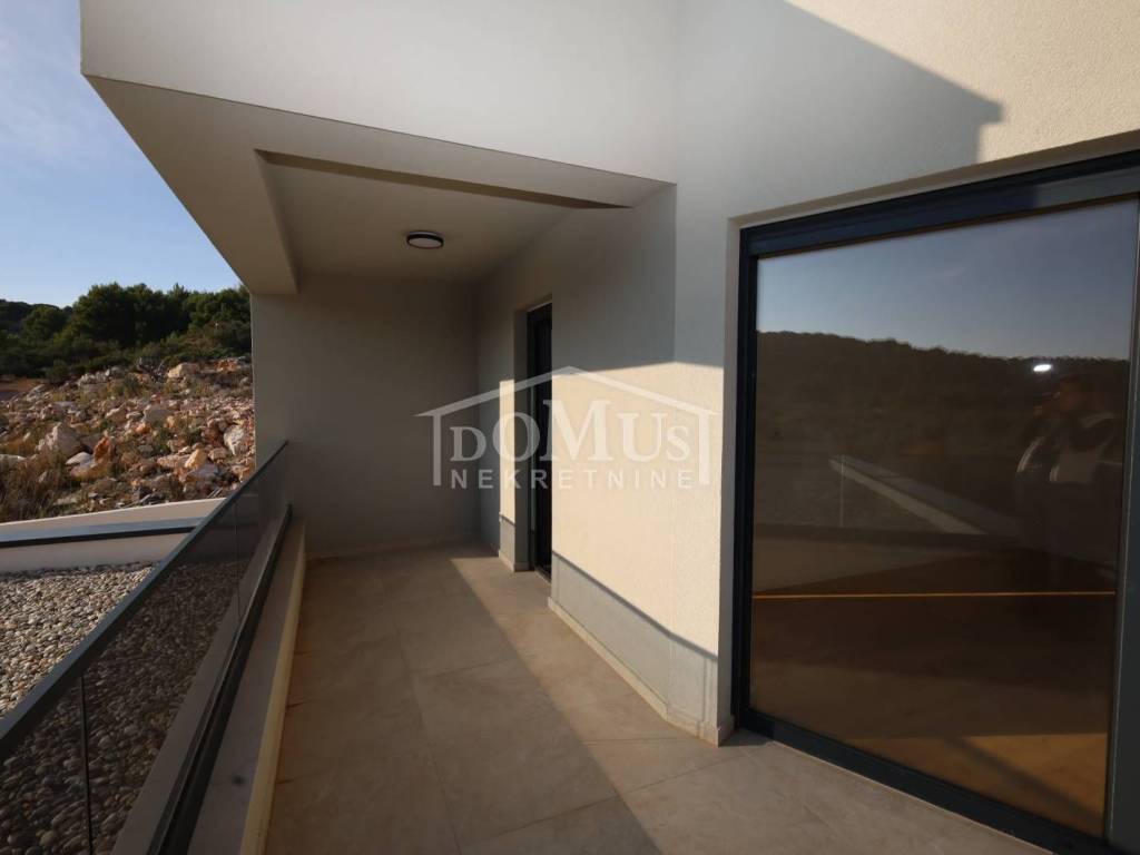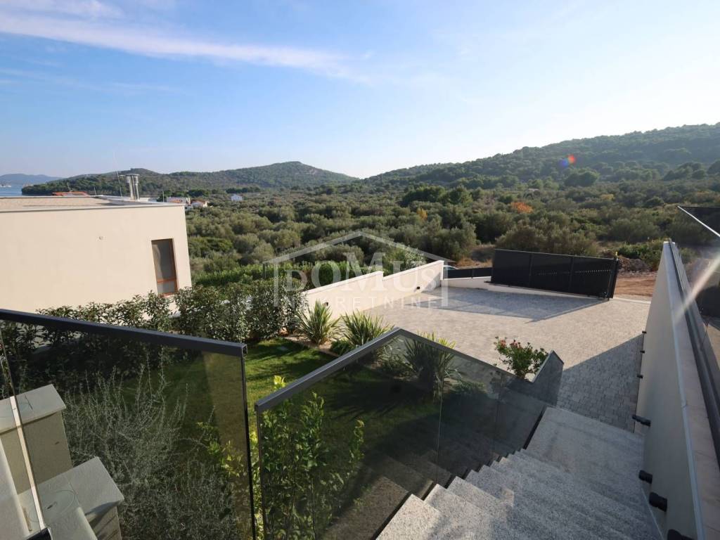 Betina, moderna vila funkcionalnog rasporeda sa prekrasnim pogledom na more. Vila se prostire na tri etaže, ima ukupnu korisnu površinu 218,53 m², na parceli površine 648 m². Suteren se sastoji od prostrane garaže, spremišta i vešeraja. Unutarnje stepenice vode u prizemlje koje se sastoji od kuhinje, blagovaonice i dnevnog boravka s izlazom na sunčalište i bazen površine 28 m², te dvije spavaće sobe, obje s izlazom na nenatkrivenu terasu, kupaonice i WC-a. Na prvom katu nalaze se dvije spavaće sobe, jedna s vlastitom kupaonicom, druga s vlastitim garderobnim prostorom, te još jedna zasebna kupaonica.