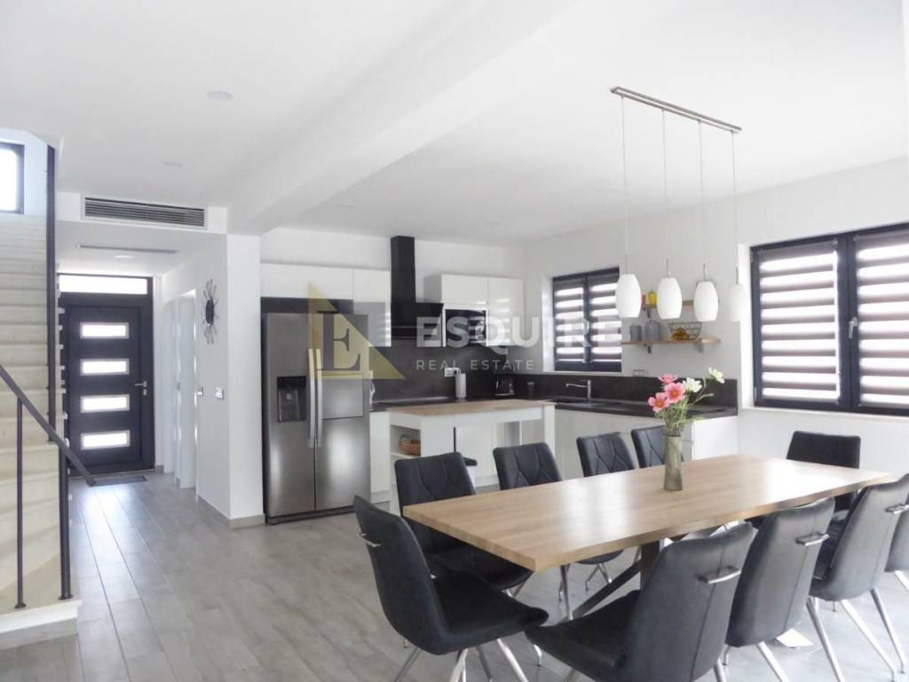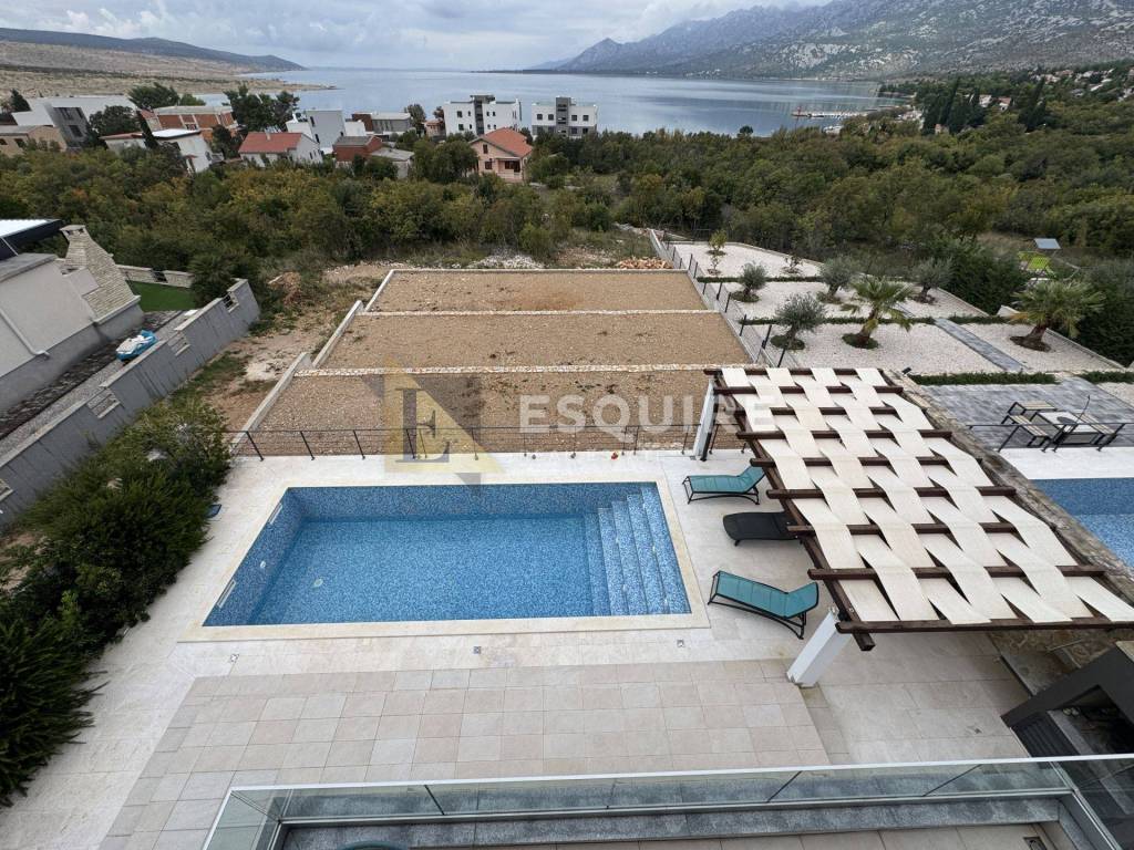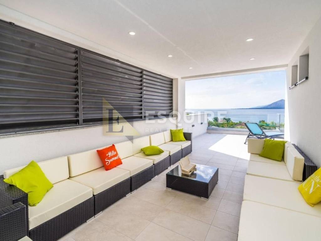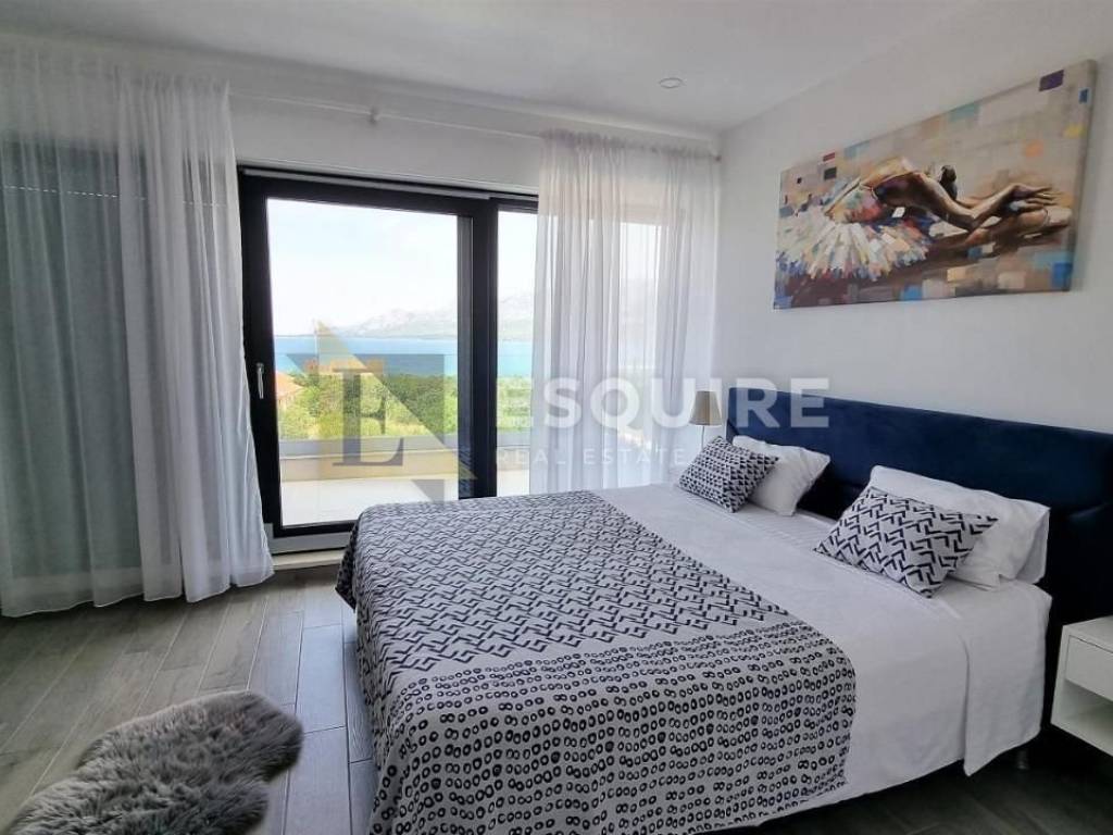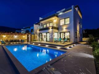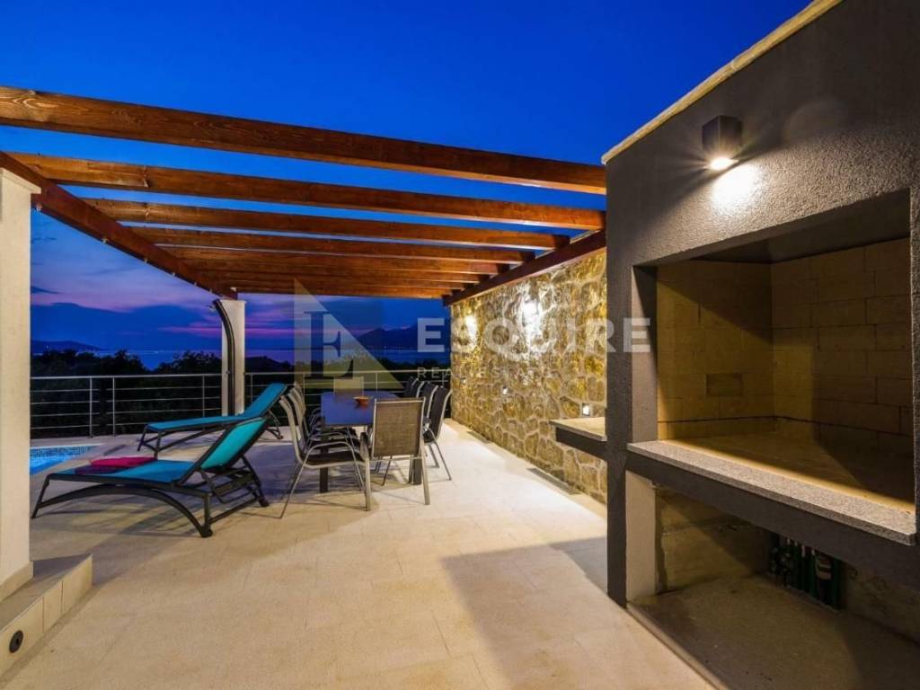 Vila je smještena na velikoj parceli s koje se pruža predivan otvoren pogled na more. Sastoji se od prizemlja s velikom okućnicom i bazenom od 31m2, kata te krovne terase.