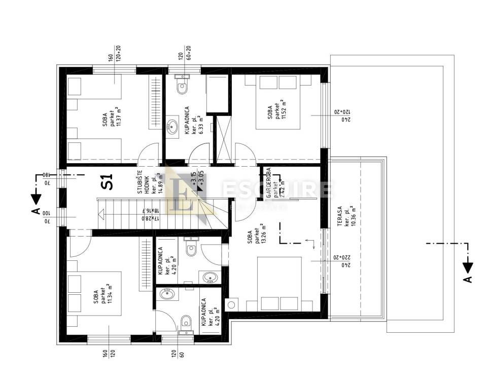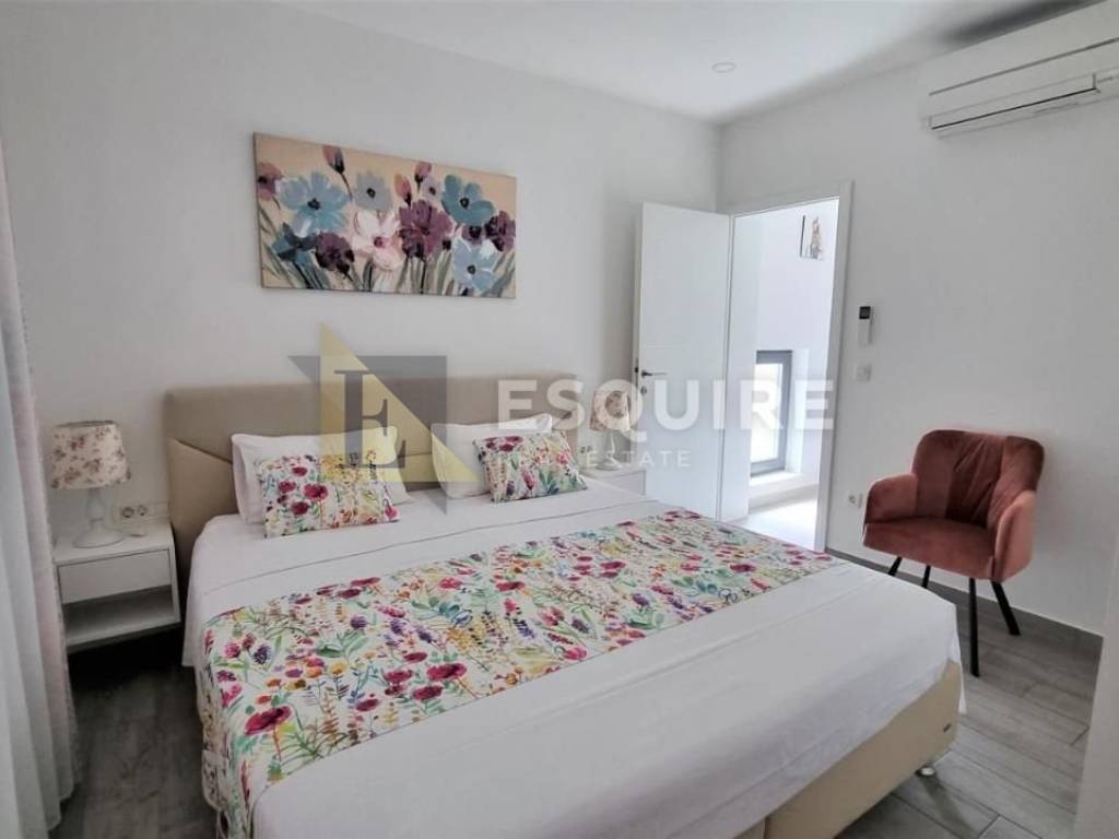 - 4 spavaće sobe od kojih dvije maju vlastito kupatilo, - zajedničko kupatilo, - terasa s otvorenim pogledom na more (izlaz iz glavne spavaće sobe).