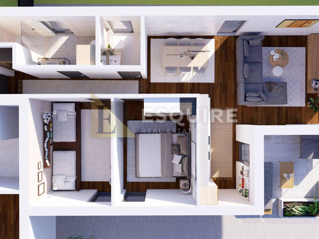 Penthouse S4 pruža vrhunski komfor i prostranost, s četiri prostrane spavaće sobe, dvije elegantne kupaonice te dva open-space dnevna boravka povezana s kuhinjom i blagovaonicom, pružajući savršenu ravnotežu privatnosti i zajedničkog prostora. Vizualizacija prikazuje dva krila – roditeljsko i dječje, a jedna soba u roditeljskom krilu može biti uređena kao kućni ured.