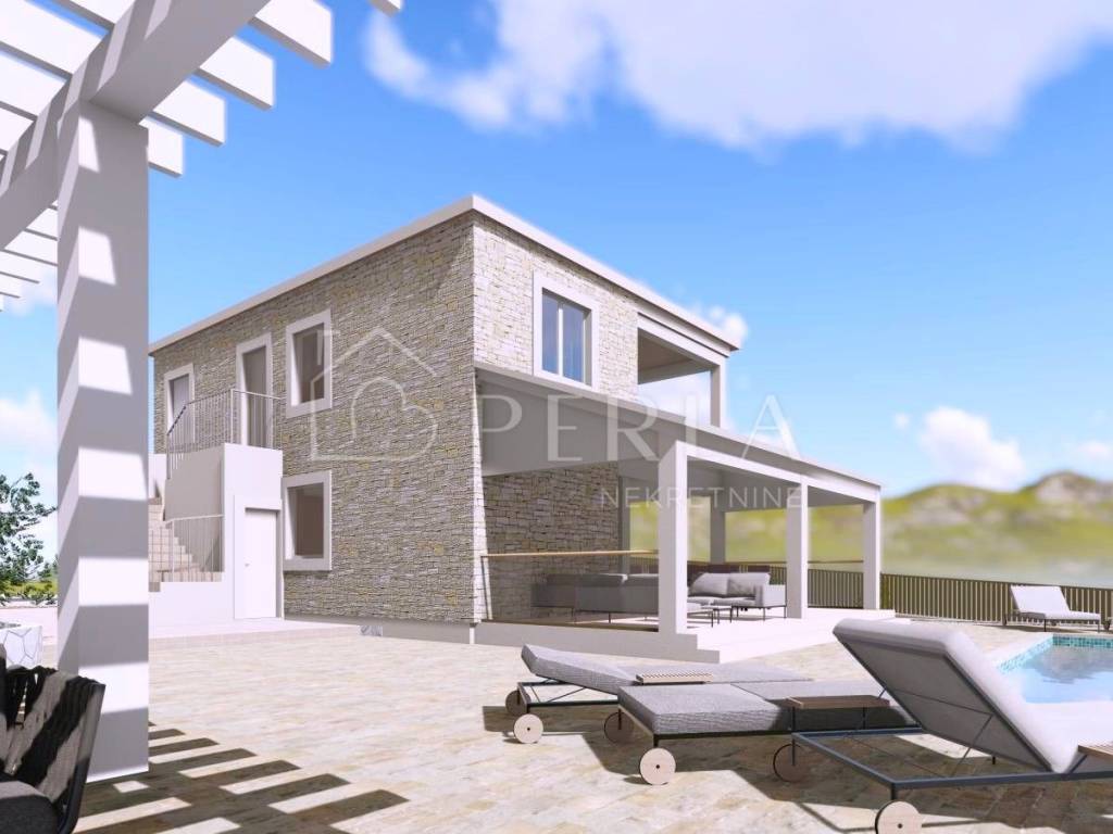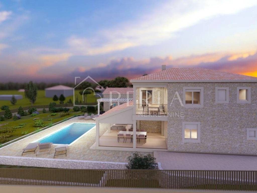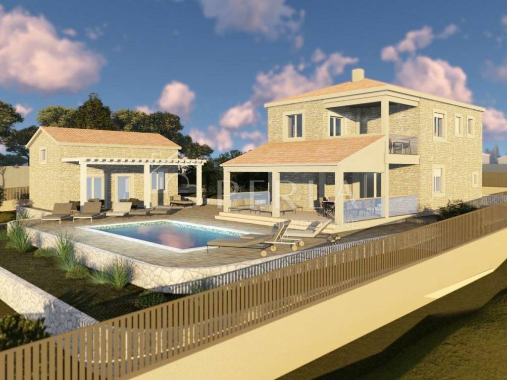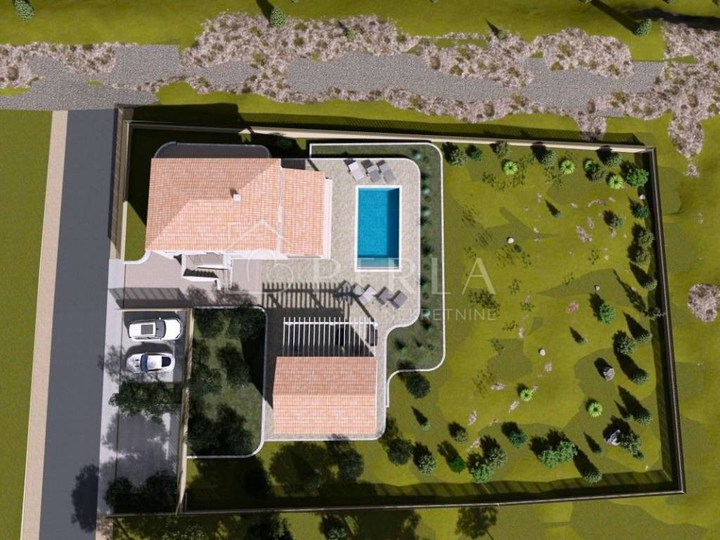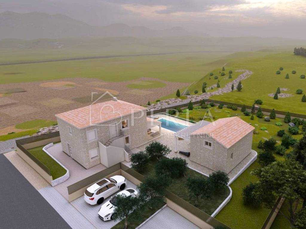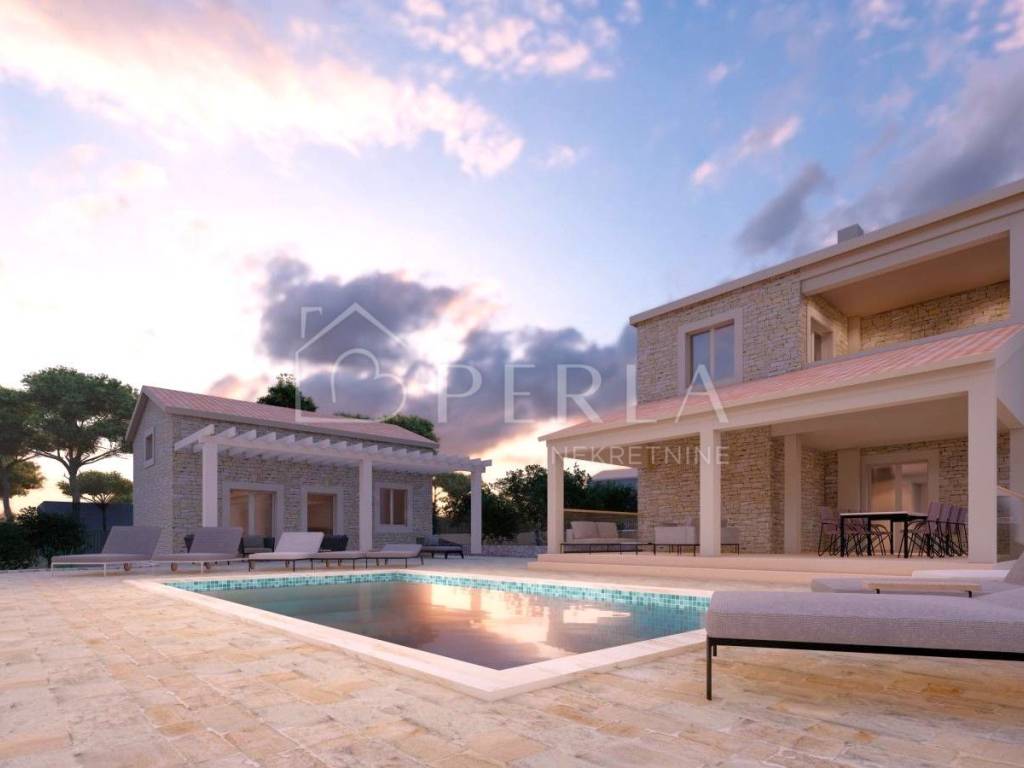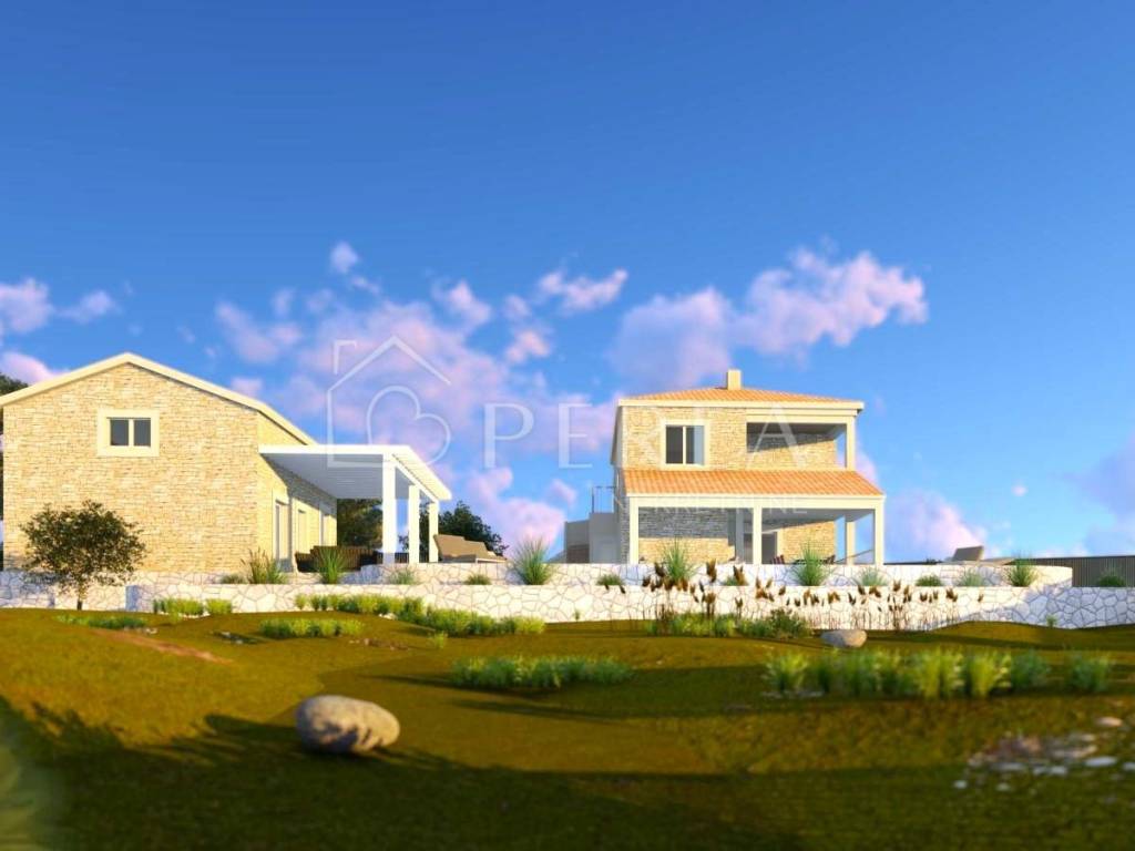 Na ovom lijepom i prostranom imanju nalazi se jedna samostojeća kuća koja se sastoji od dvije stambene jedinice, svaka na svojoj etaži te jedan pomoćni objekt koji služi kao konoba i spremište (neto 39,9 m2).