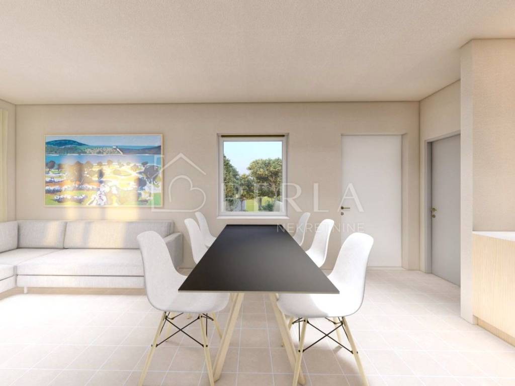 U prizemlju se nalazi dvosoban stan koji se sastoji od dvije spavaće sobe, kuhinje, blagavaonice i dnevnog boravka te kupaonice, ukupne stambene površine 60,25 m2 te terase (neto 39 m2).