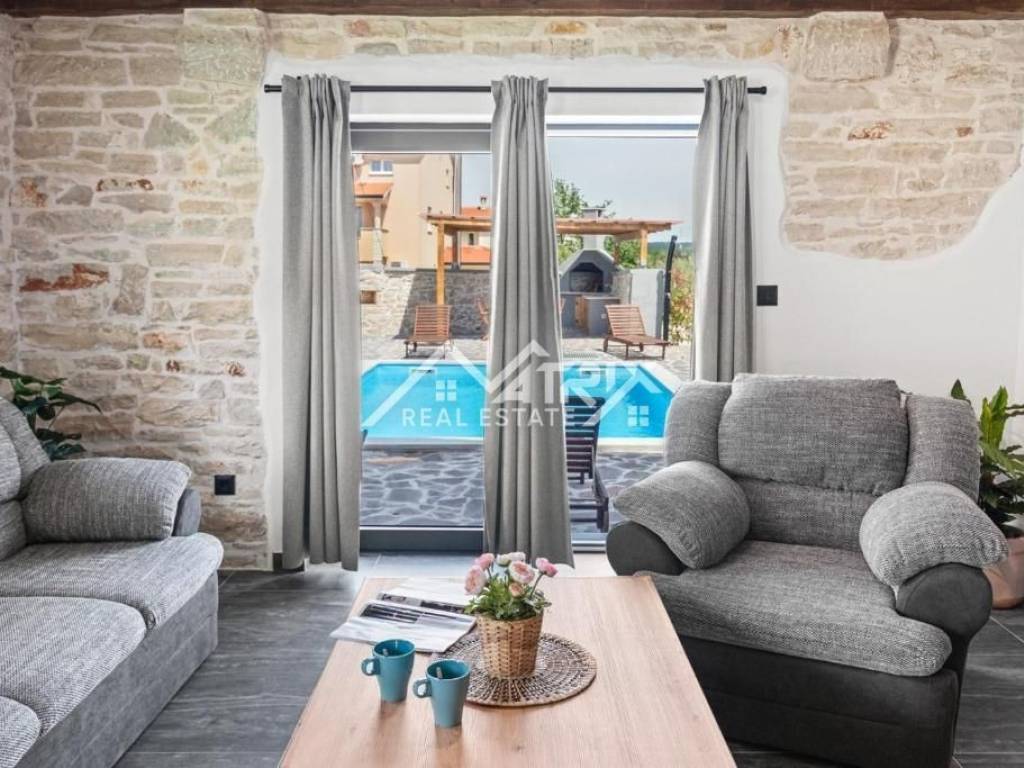 Poreč okolica, šarmantna kamena kuća sa bazenom i vrtom
