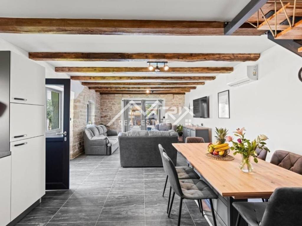 Ova predivna kamena kuća, potpuno renovirana 2024 godine, nudi idealan spoj modernih udobnosti i tradicionalnog šarma. Smještena samo nekoliko minuta vožnje od grada Poreča i njegovih predivnih plaža, nekretnina je savršena za one koji traže miran odmor u blizini mora ili žele investiciju u turističke svrhe.