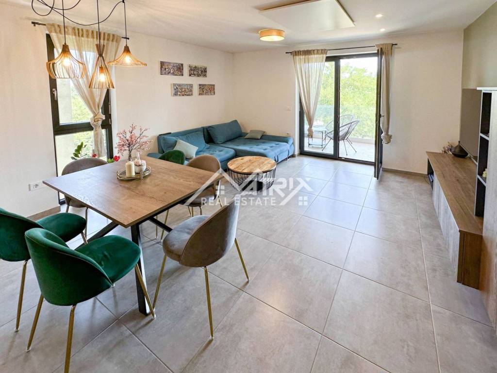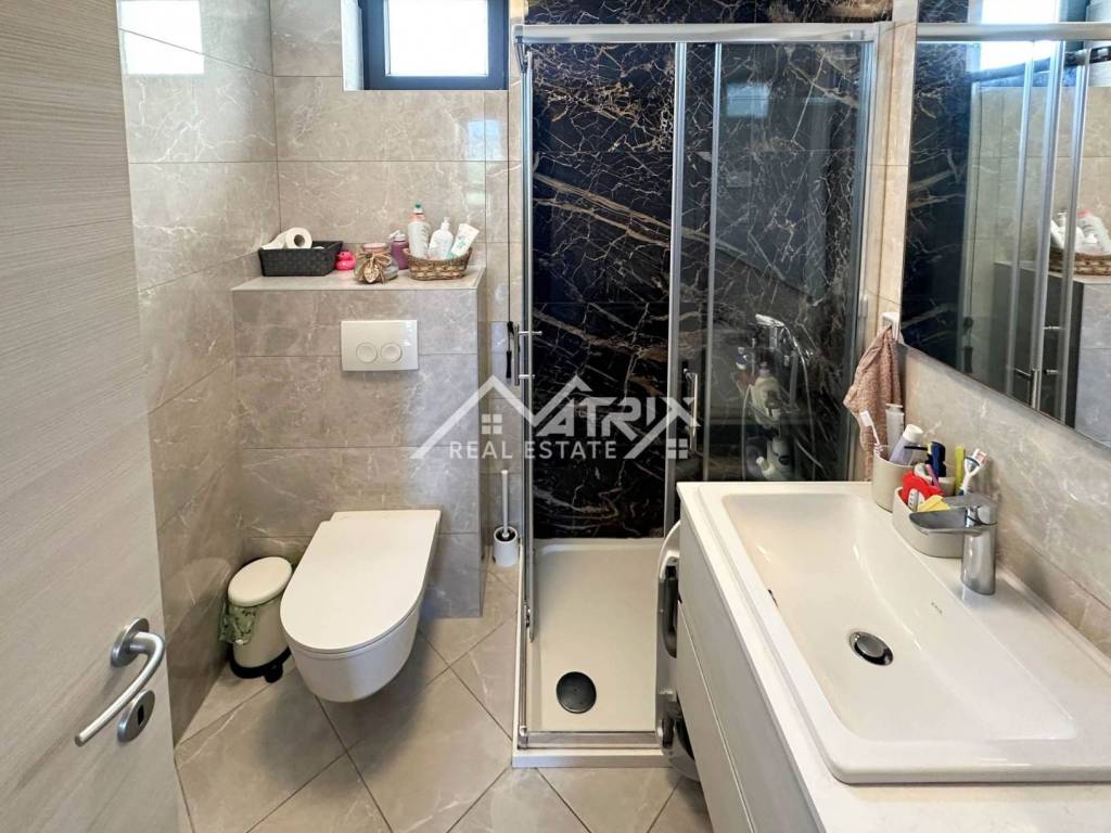 Smješten u stambenoj zgradi na drugom katu, ovaj stan pruža ugodan i moderan prostor. Sastoji se od prostranog dnevnog boravka, kuhinje i blagovaonice u open space konceptu, tri udobne spavaće sobe, elegantne kupaonice i dodatnog WC-a, te natkrivene terase idealne za opuštanje. U podrumu zgrade nalazi se drvarnica, a zgrada je uredno održavana s poštivanjem kućnog reda.