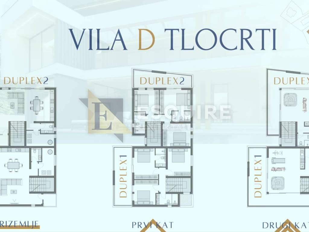 Vila se prostire na tri etaže, koje su osmišljene s naglaskom na funkcionalnost, komfor i luksuz, što je jasno vidljivo i kroz priložene tlocrte.
