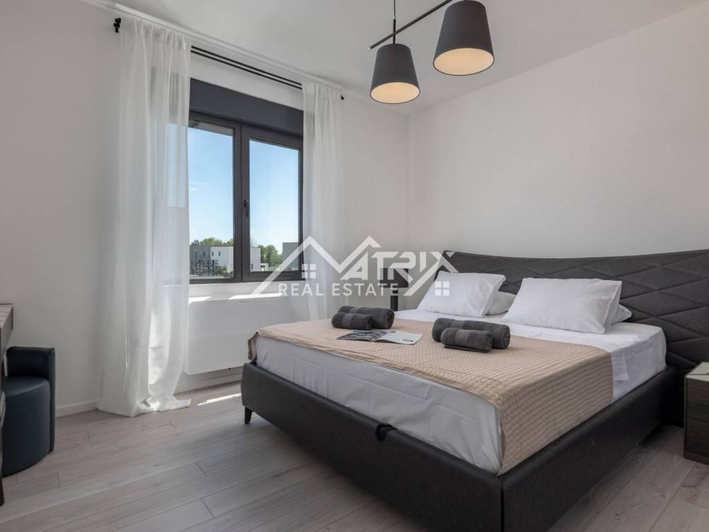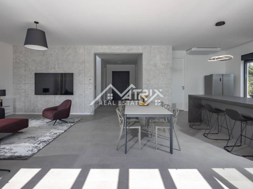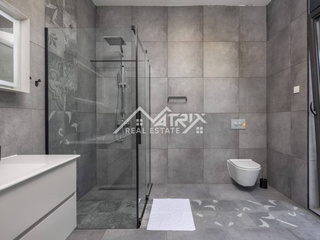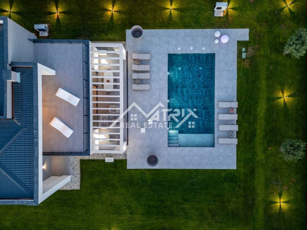 Unutrašnjost vile uključuje potpuno opremljenu, modernu Veneto Cucine kuhinju, savršenu za pripremu obroka u privatnosti doma, dok je na terasi moguće uživati u lokalnim gastronomskim delicijama. Vila je opremljena s visokokvalitetnim turskim namještajem i talijanskom garniturom za sjedenje, pružajući luksuz i udobnost. Dodatna prednost ove vile je privatni parking, punjač za električna vozila te navodnjavani vrt, što doprinosi održivosti i modernom načinu života.