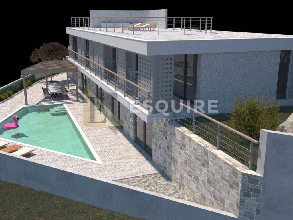PLANIRANI RASPORED PROSTORIJA Prizemlje: prostrani dnevni boravak kuhinja i blagovaonica otvorenog koncepta WC praonica rublja spremište Iz dnevnog boravka izlazi se na prostranu terasu s grijanim bazenom i sunčalištem, idealnu za uživanje u zalascima sunca, uz neometan pogled na more i stari grad Nin. Gornji kat: 4 spavaće sobe, svaka s vlastitom kupaonicom zajednički balkon koji povezuje sve sobe Krovna terasa: dodatni luksuzni prostor s spektakularnim panoramskim pogledom na more, savršen za privatna druženja i opuštanje.