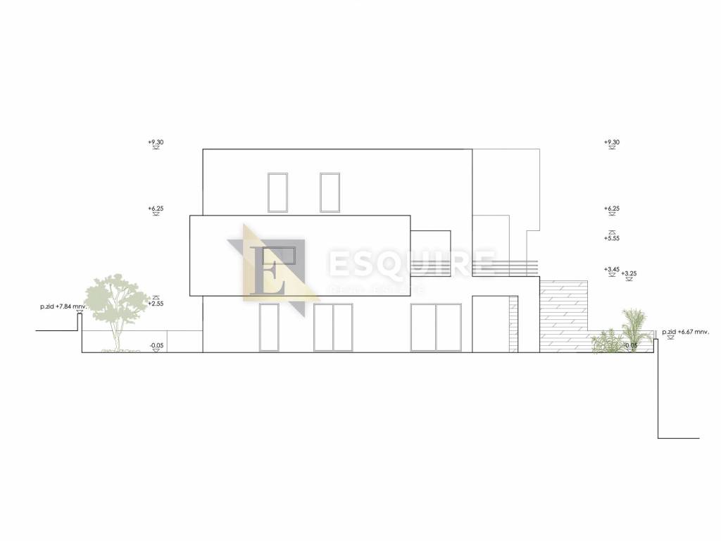 Projektom je predviđena izgradnja moderne stambene zgrade s ravnim krovom, organizirane u dva arhitektonska segmenta, povezane natkrivenim ulazom i stubištem.