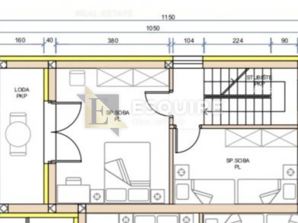 - Potkrovlje: dodatna prostorija sa priključcima za kuhinju i velika terasa površine 25 m²